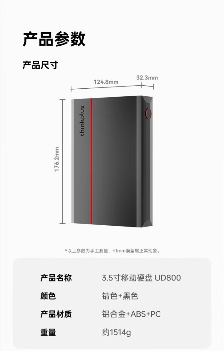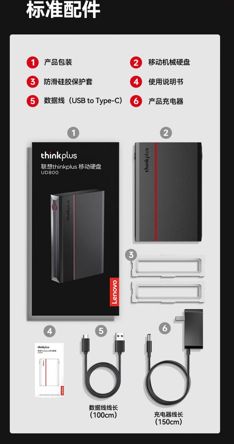 ThinkPlusThinkPlus Lenovo Mobile Hard Drive 3.5-inch Type-C USB3.2 Desktop Mechanical Hard Drive Large Capacity External Home Office Storage UD800 4TB