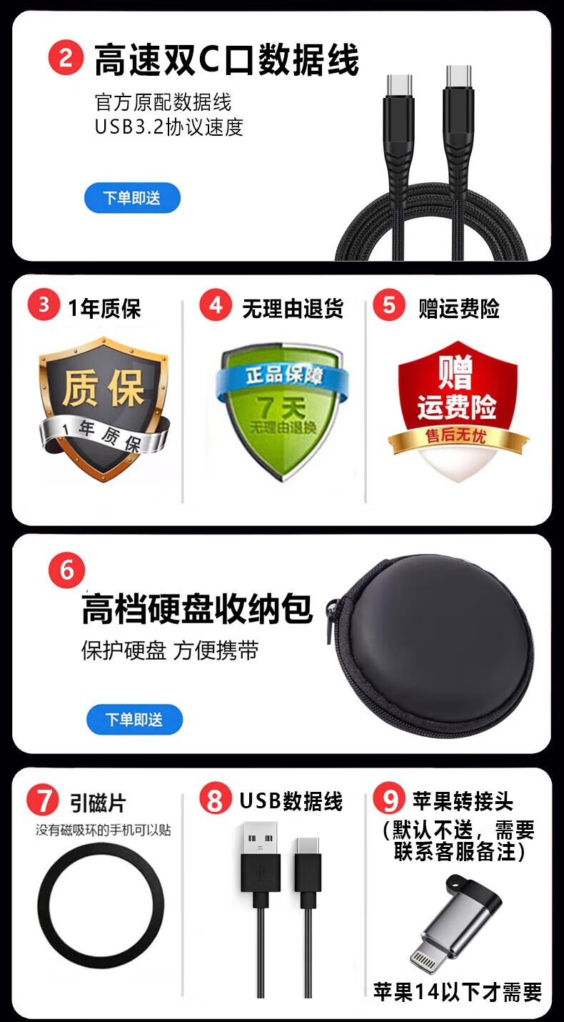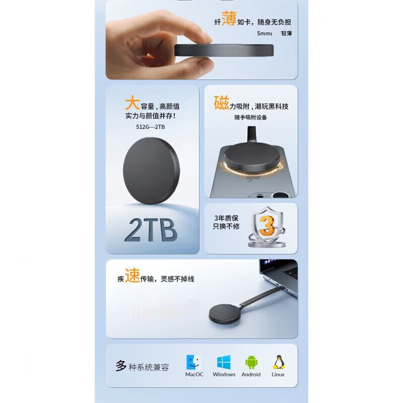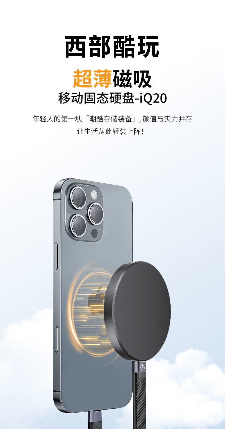 西部雷霆磁吸4tb苹果安卓手机电脑通用2t移动固态硬盘硬碟加密 【极光银】【跨境扩容版】 1TB