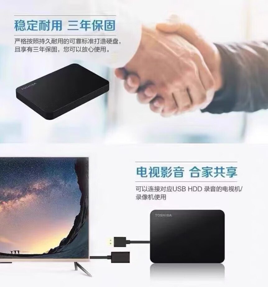 东芝(TOSHIBA)全新新小黑A3大容量移动硬盘/1T/2T高速USB3.0外置电脑通用2.5寸 墨羽黑 1TB