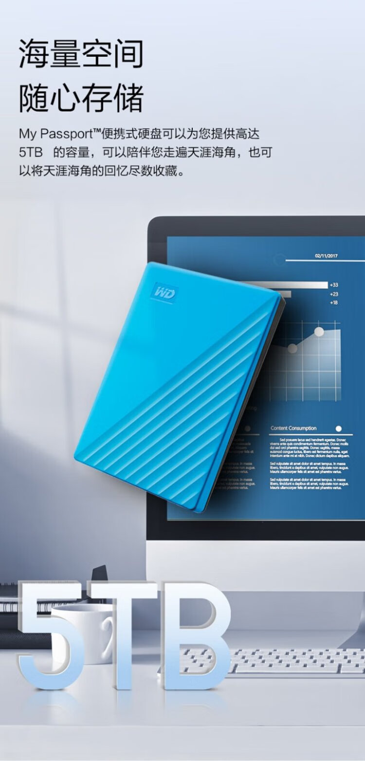 Western Digital (WD) mobile hard drive USB3.0 My Passport accompanying version 2.5 inches mechanical hard drive mobile phone computer external external hard drive encryption compatible with Mac accompanying version 2TB (blue) WDBYVG0020BBL
