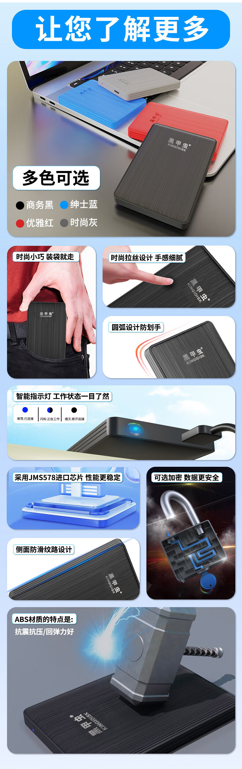 Black Beetle mobile Hochgeschwindigkeitsfestplatte USB3.0-Schnellübertragung unterstützt Mobiltelefonsicherheit, verschlüsselbares Backup, personalisierte Anpassung, kompakt und tragbar, High-End-Metall (Mitternachtsschwarz) + Hartschalentasche 500 GB