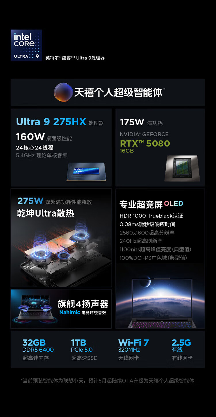 联想(Lenovo)拯救者Y9000P 2025款AI元启电竞游戏笔记本补贴20% 2代酷睿Ultra9满血RTX5060/5070Ti独显学生电脑 Ultra9-275HX RTX5080 碳晶黑 96G内存 2TB固态 AI元启 升级