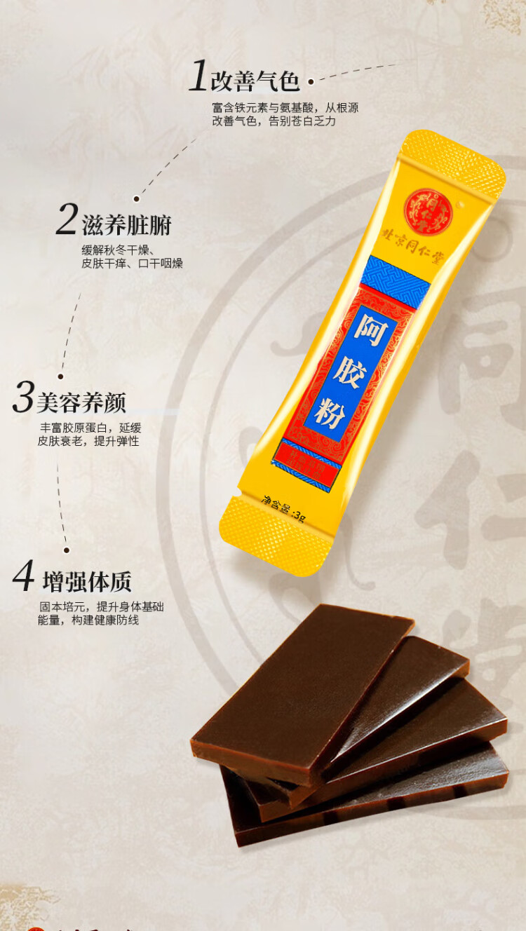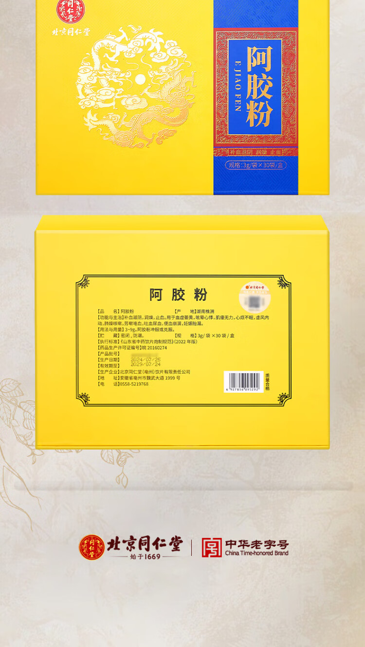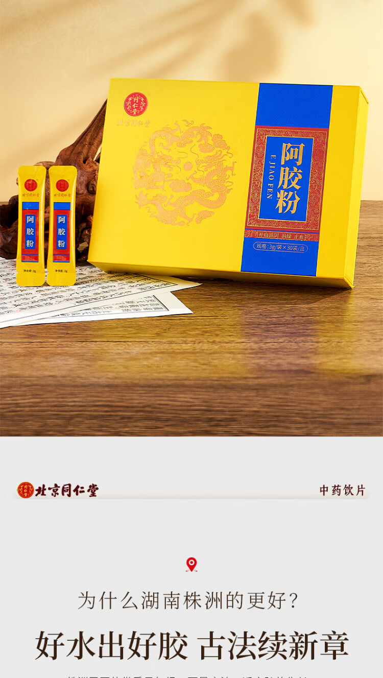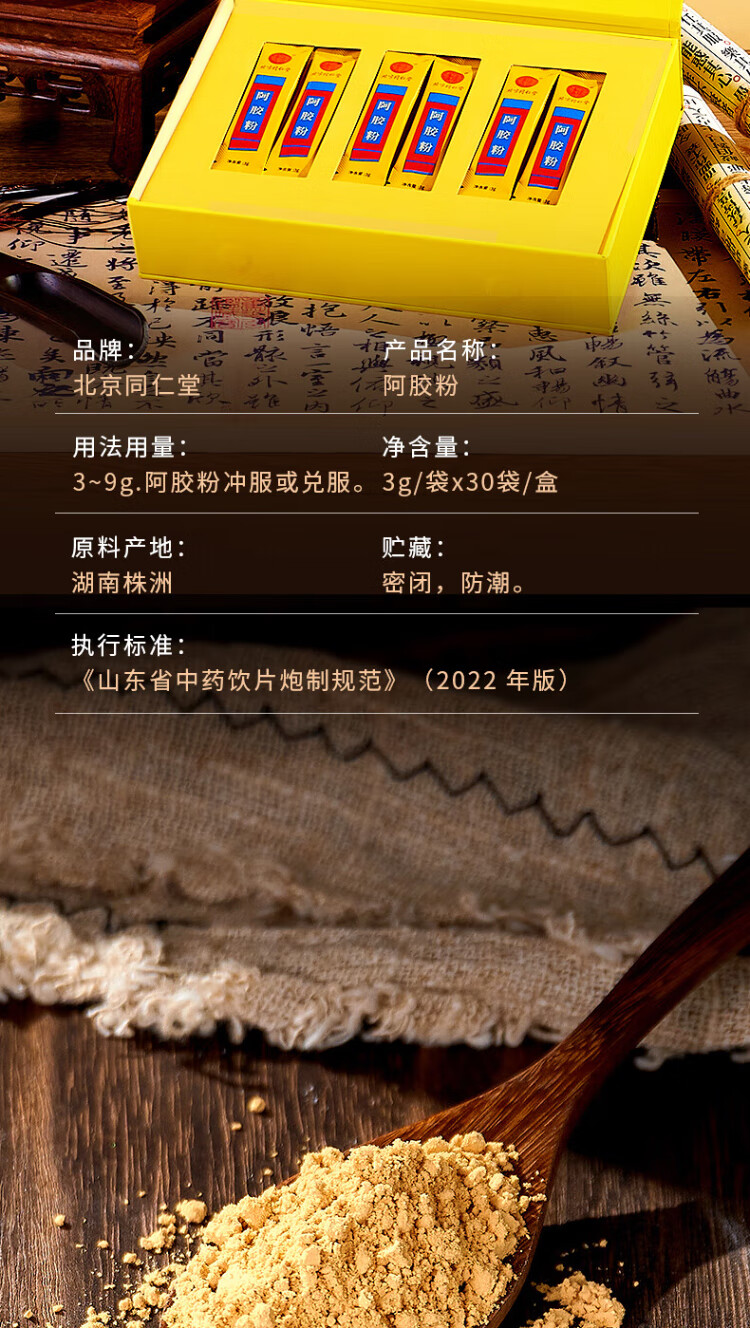 同仁堂(TRT)北京同仁堂自营 阿胶粉纯粉3g*30袋礼盒装 独立袋装 纯粉 无糖中药饮片 补血滋阴 润燥 止血 补气血便携装