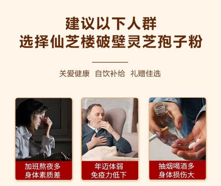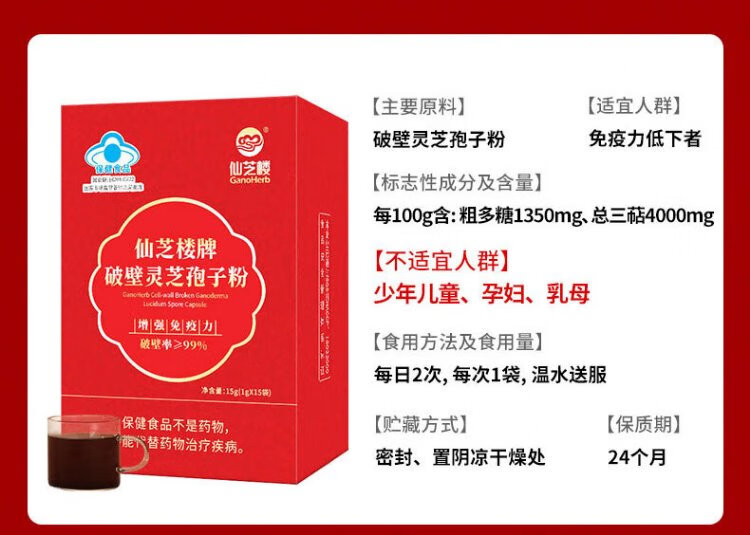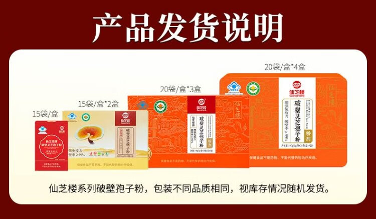 Xianzhilou Broken Ganoderma Lucidum Spore Powder helps to enhance immunity for adults, middle-aged and elderly health care products for elders and parents, trial pack, 4 bags of spore powder