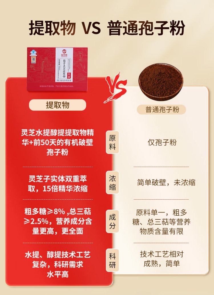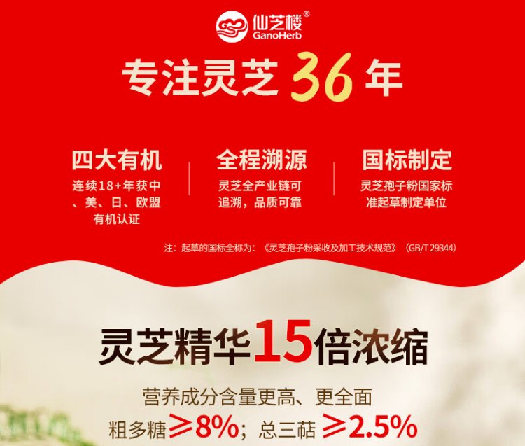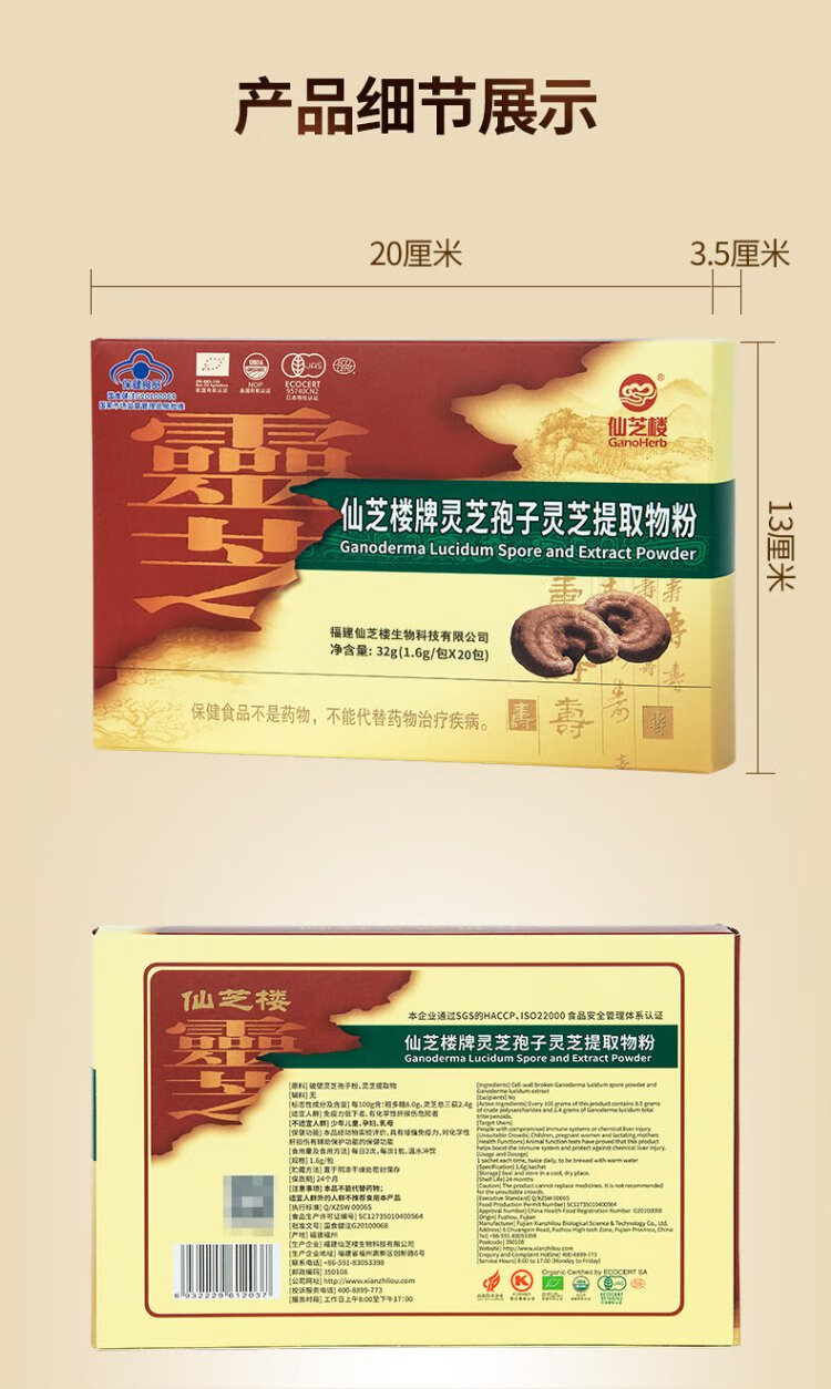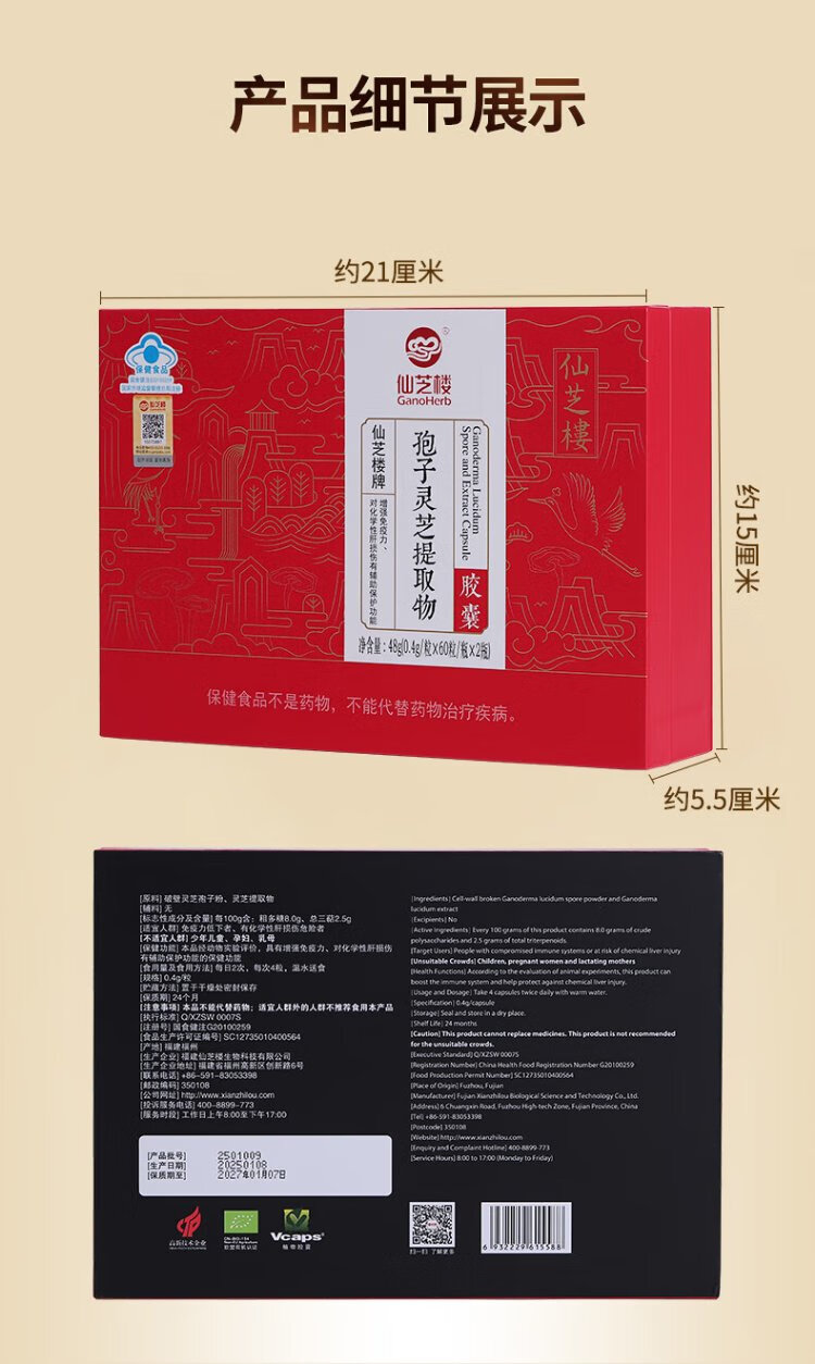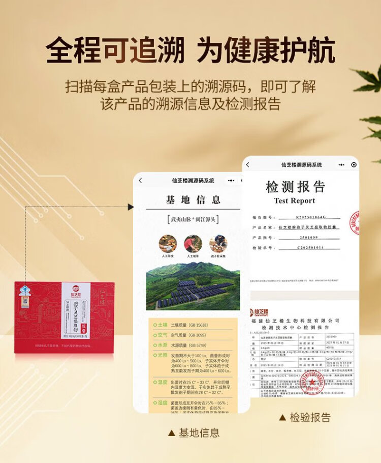 仙芝楼破壁灵芝孢子粉 孢子灵芝提取物胶囊 增强免疫力保健品送礼礼品 1盒 48g 提取物胶囊礼盒