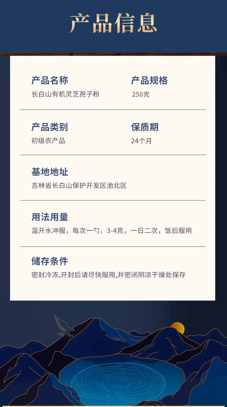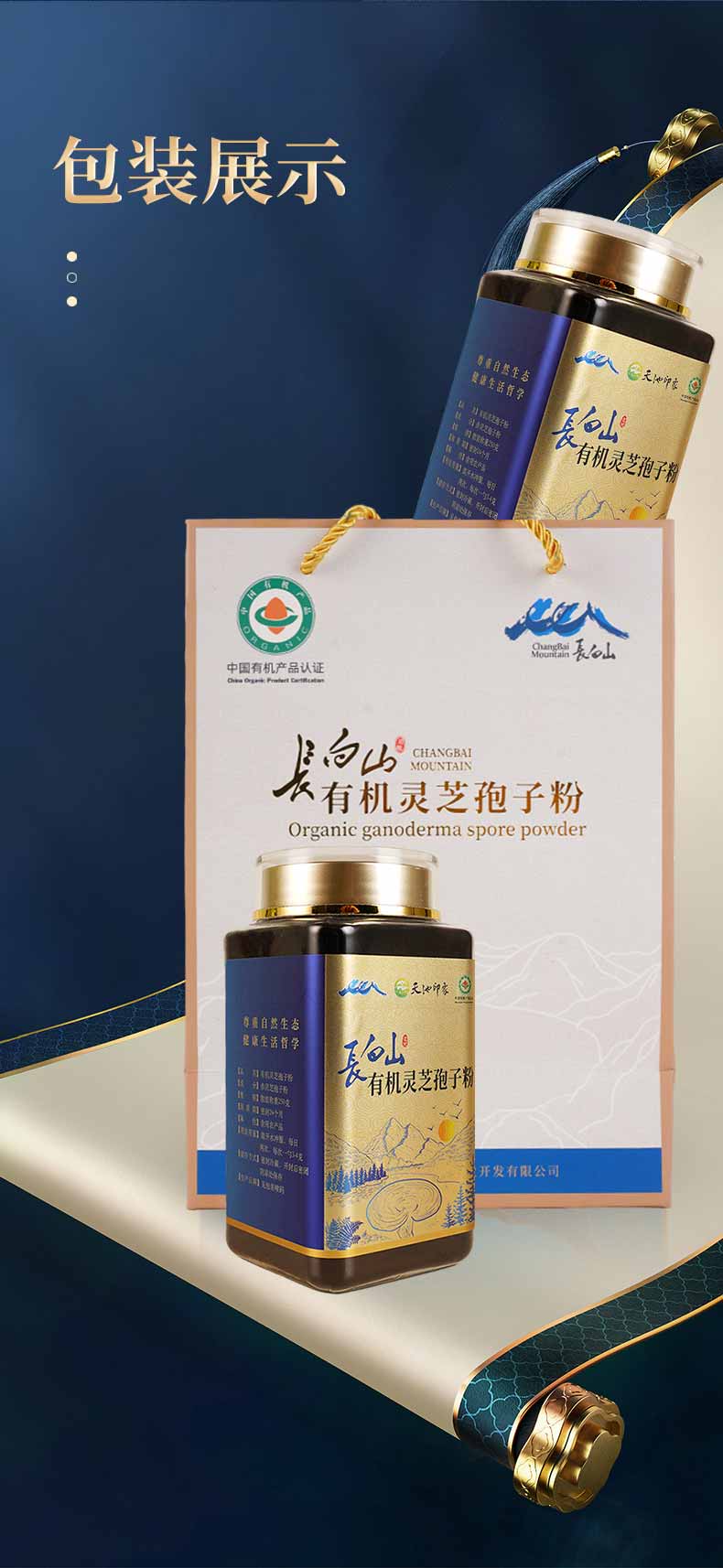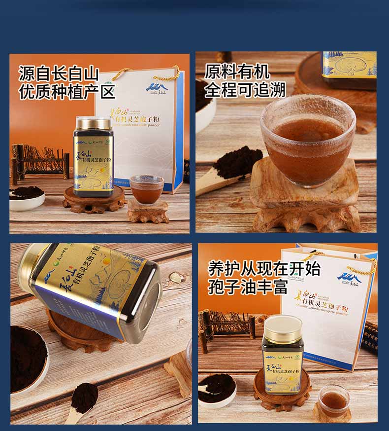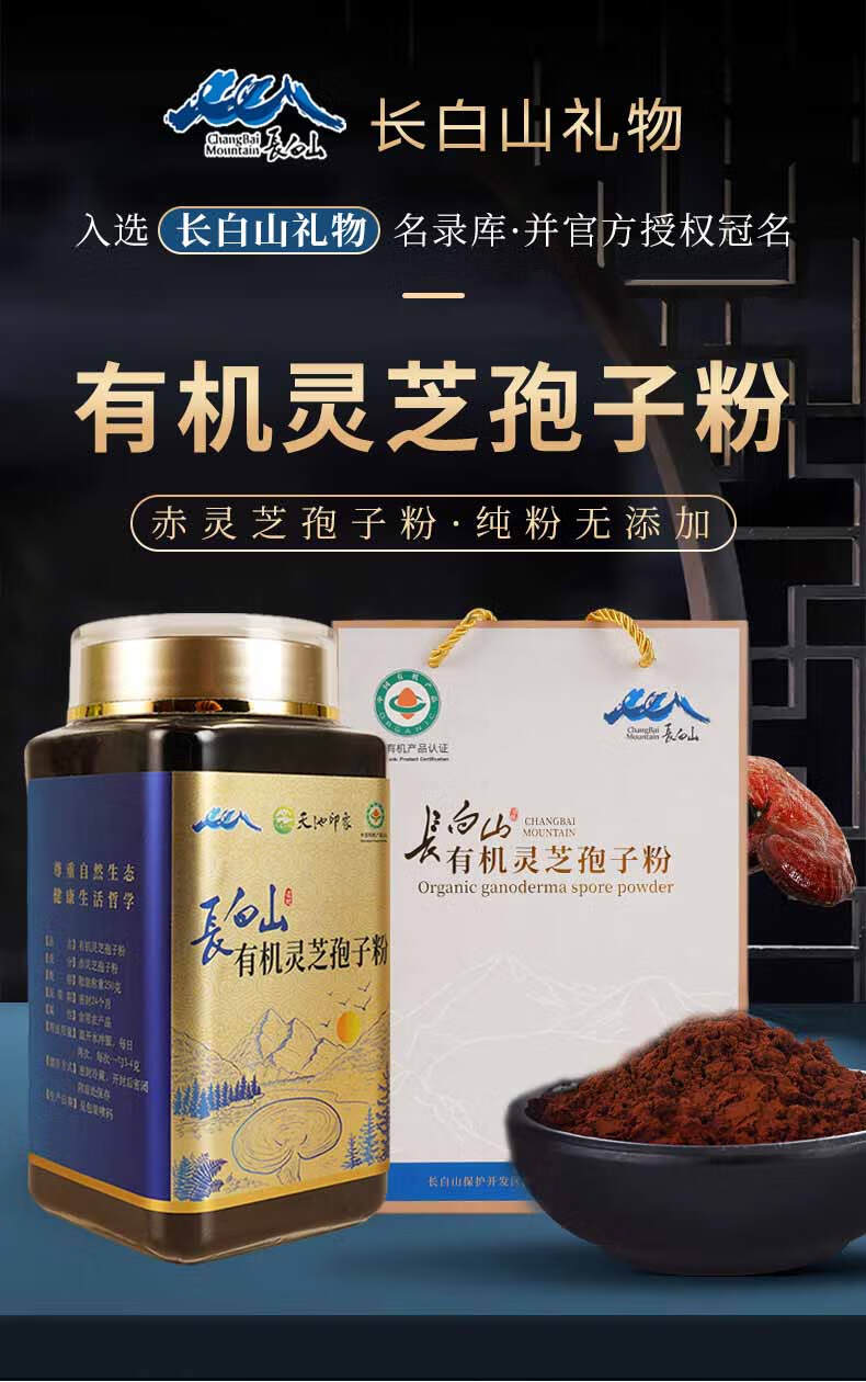 天池印象有机灵芝孢子粉长白山礼物头道灵芝粉新年礼盒礼品送父母长辈 有机灵芝孢子粉250g*2罐(送礼袋)