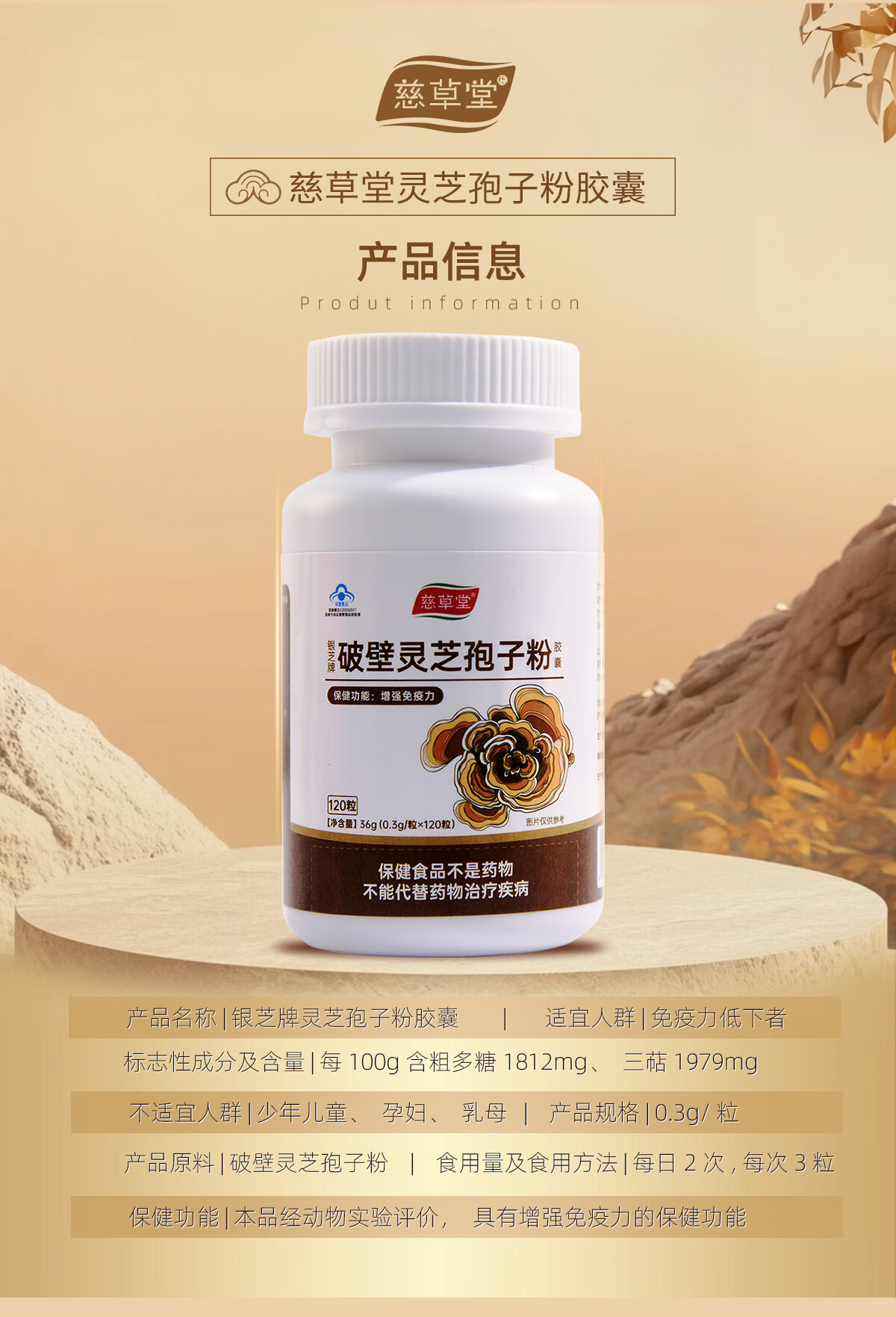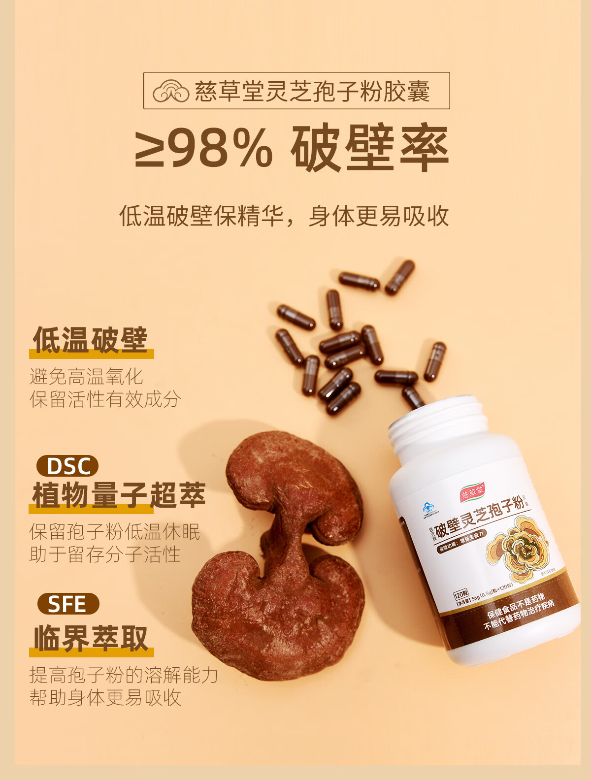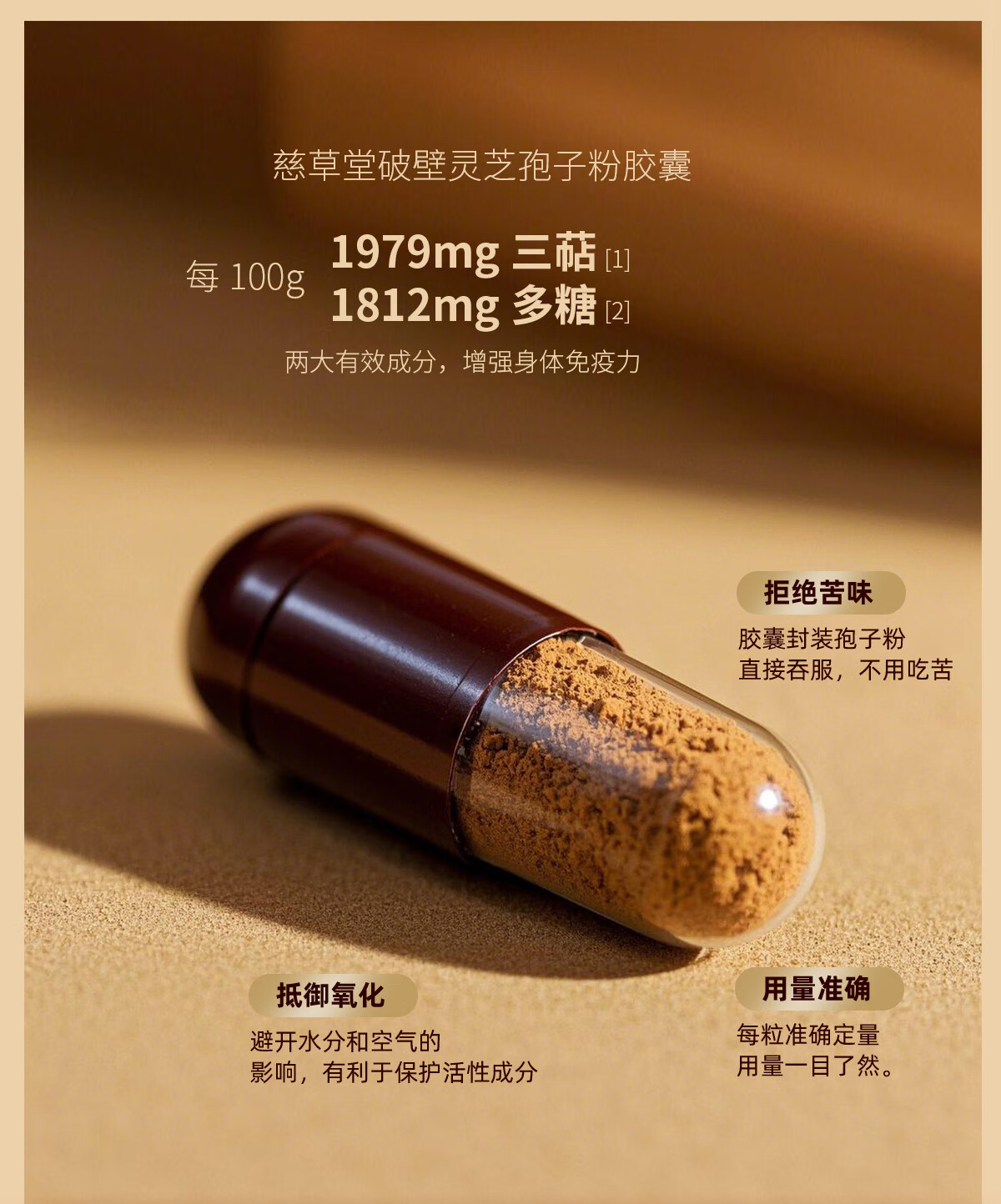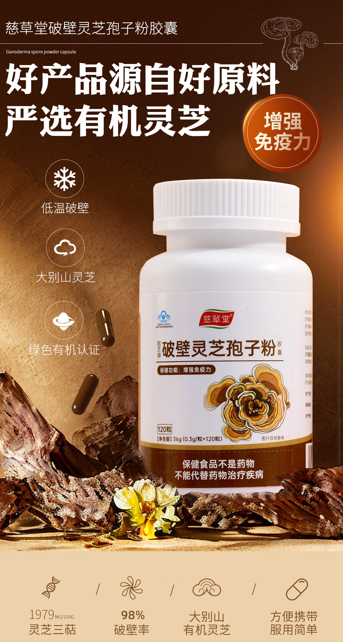 慈草堂破壁灵芝孢子粉胶囊增强免疫力蓝帽子中老年滋补 灵芝孢子粉