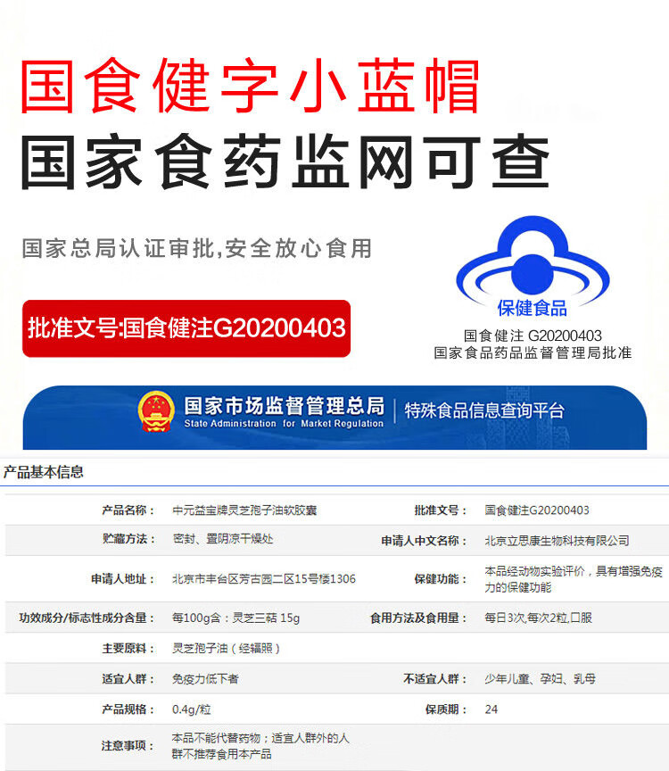 Authentic Ganoderma lucidum spore oil soft capsule Changbai Mountain broken Ganoderma lucidum spore powder extraction authentic Linzhi robe oil granules FDA export Zhongyuan Yibao brand three boxes of 180 capsules