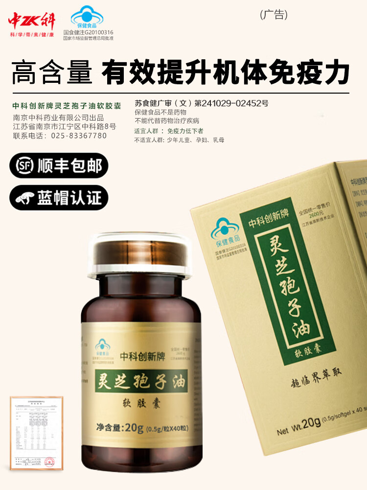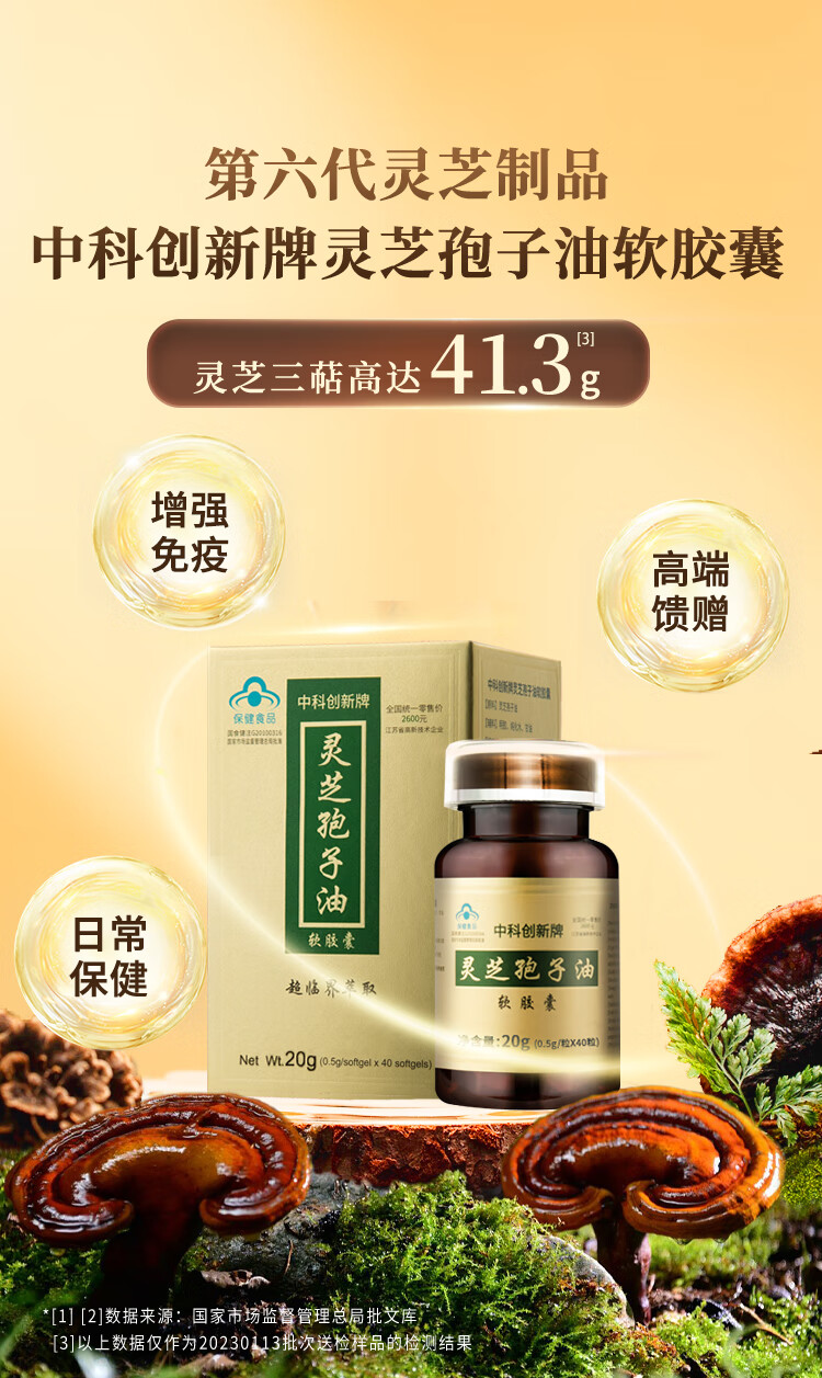 Zhongke Innovation Cápsulas blandas de aceite de esporas de Ganoderma, extracción de polvo de esporas para mejorar la inmunidad, suplementos para la salud y caja de regalo nutricional, 40 cápsulas * 3 botellas, período recomendado, consulta con nuevos clientes para solicitar el paquete de prueba