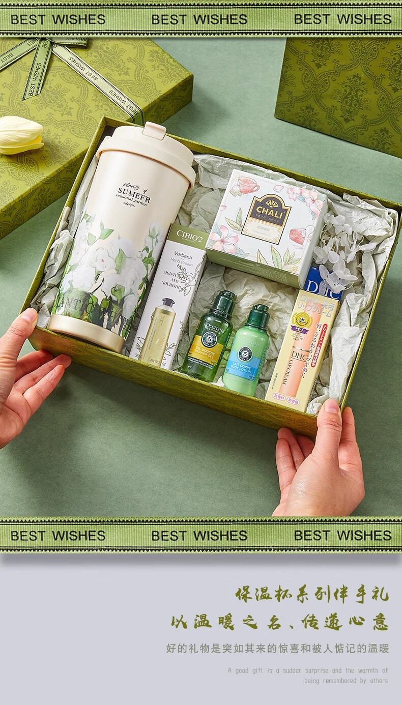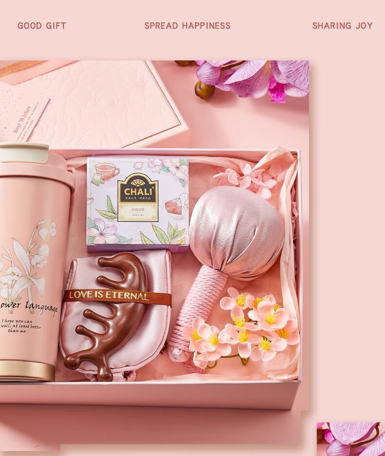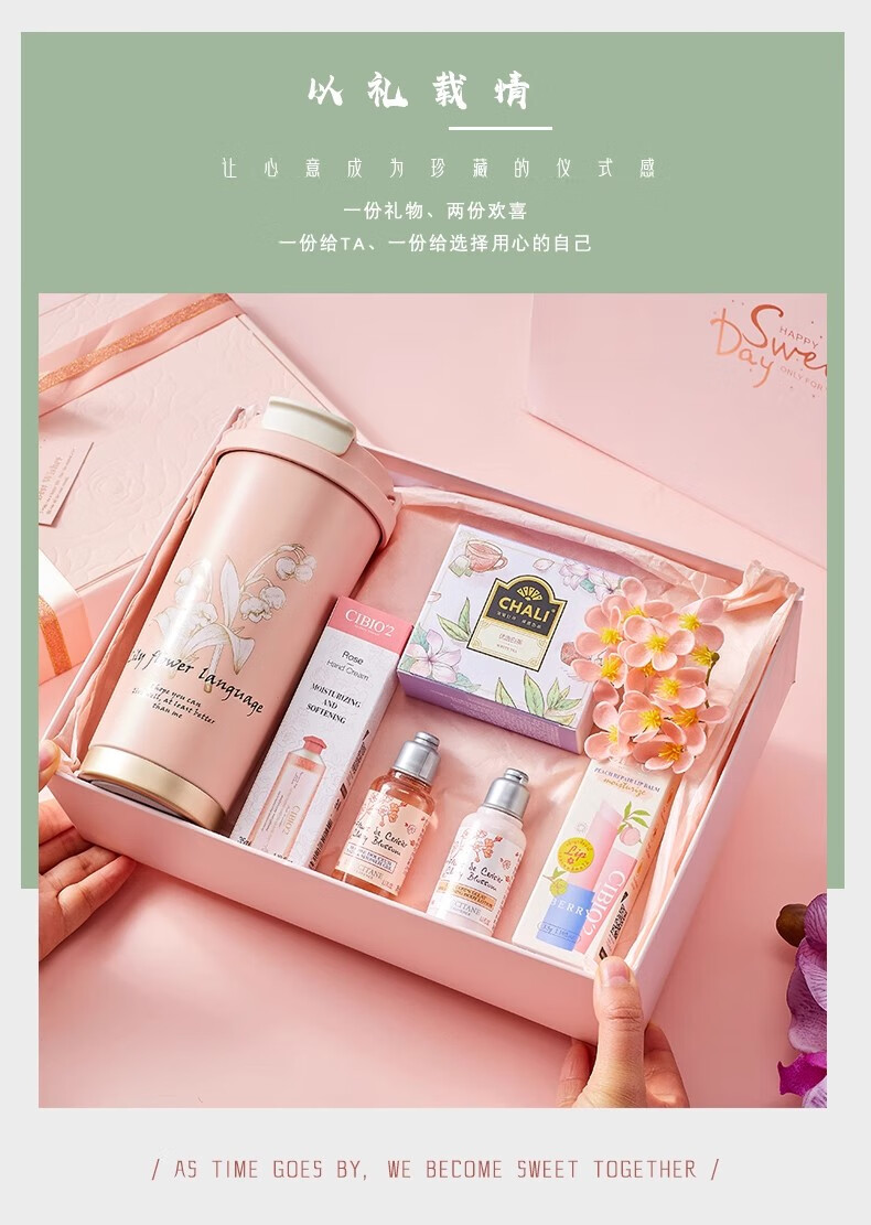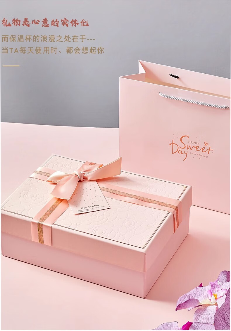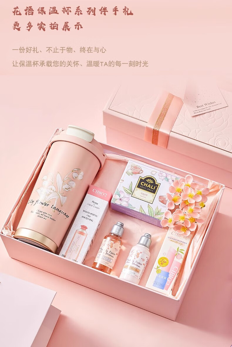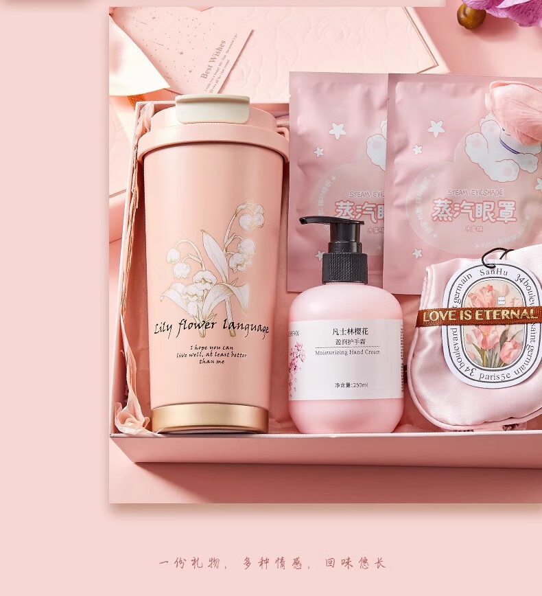 Tang Bei's birthday gift for girls to send to their girlfriends and besties. Gift box for bridesmaids. Practical small gift. Customized thermos cup gift box for women. Pink thermos cup, comb and soap set.