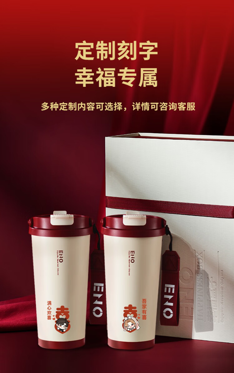 Taza de café eno taza termo taza de agua de paja de acero inoxidable 316 portátil de grado alimenticio personalización de regalo de boda ZKF007 retro rojo * 2 juego de boda 500ml