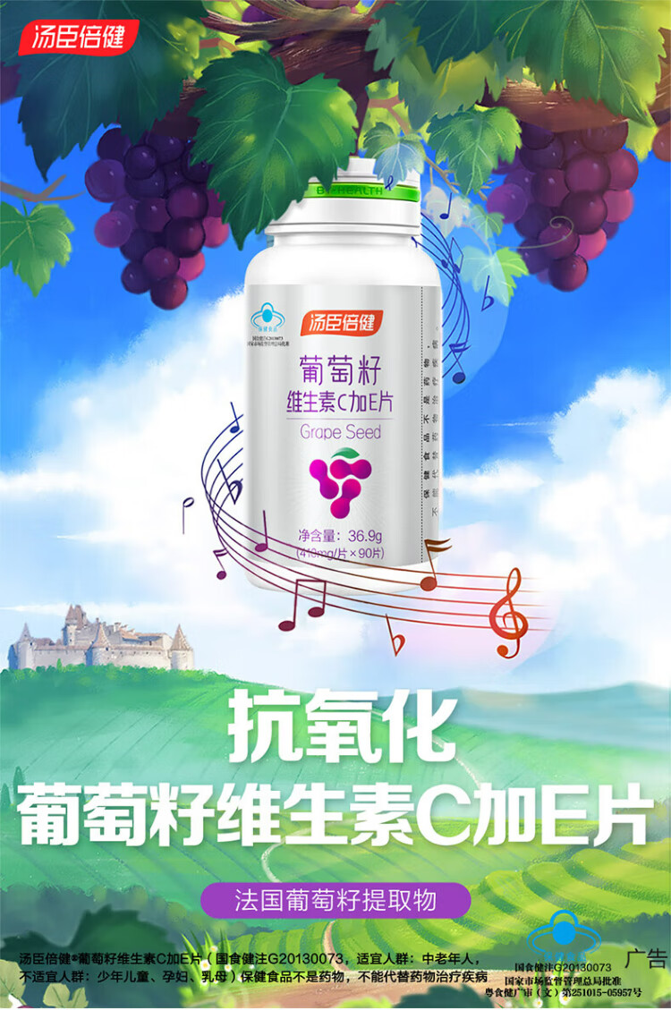 汤臣倍健葡萄籽维生素E原花青素维生素C片抗氧化90片  清除氧自由基
