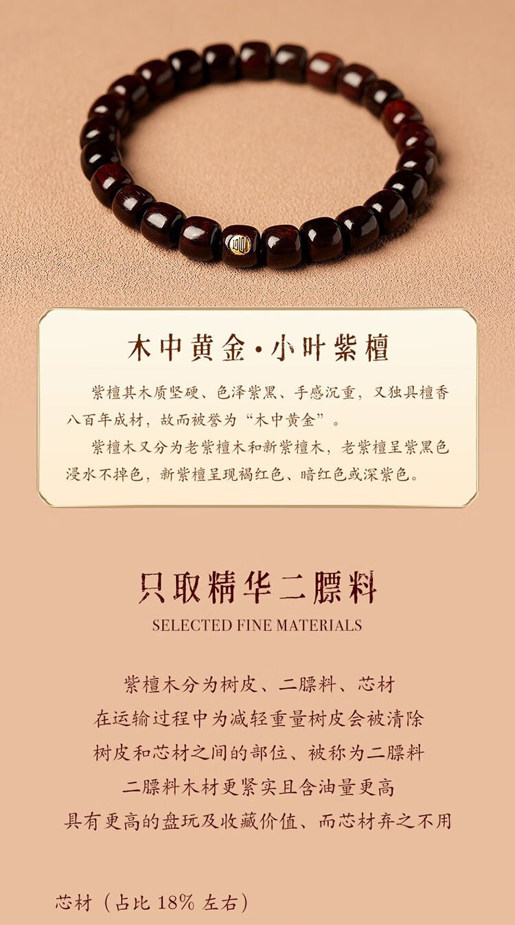 满木园印度小叶紫檀手串女士 老料高油高密檀香单圈手链男士生日礼物