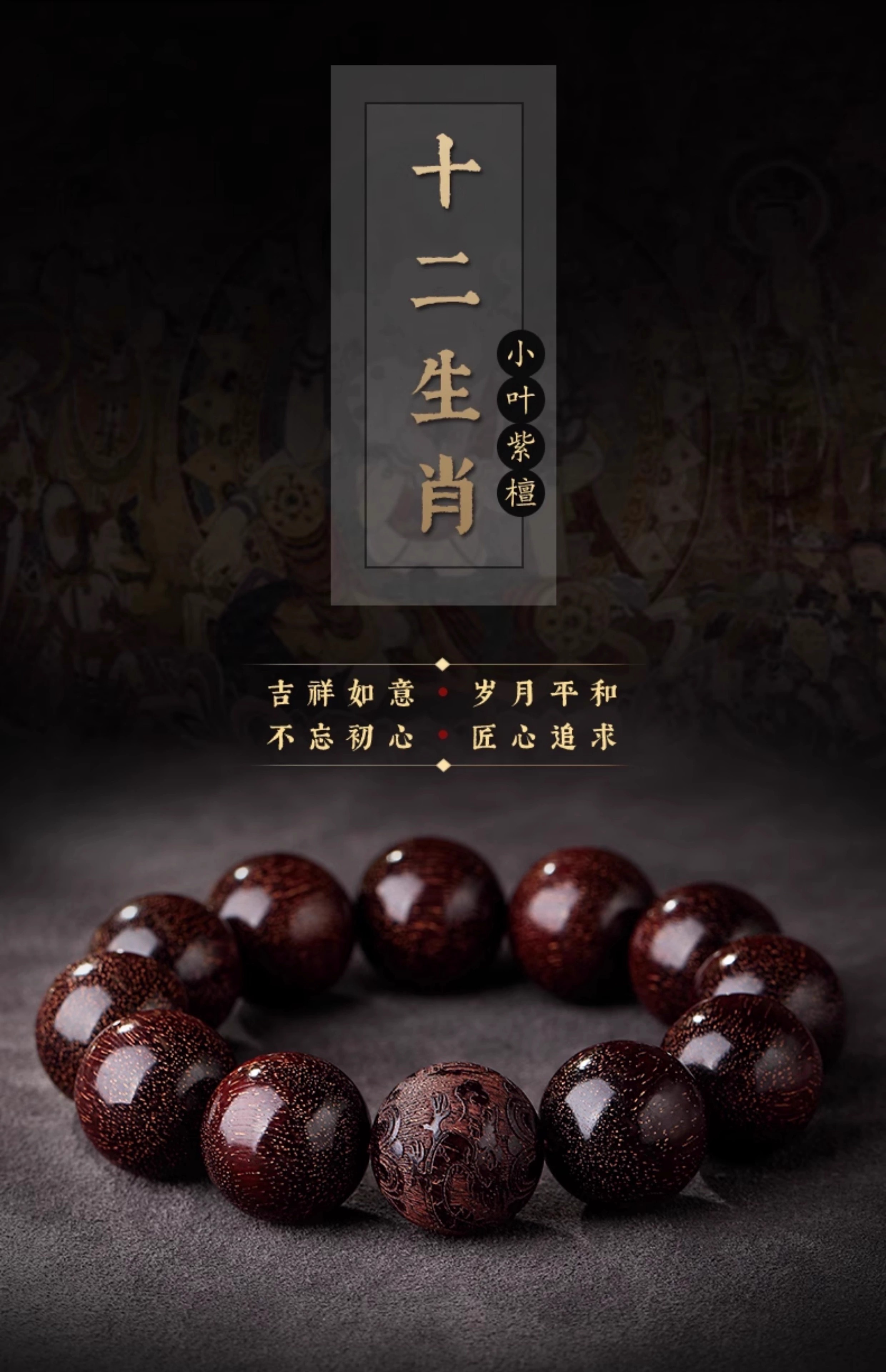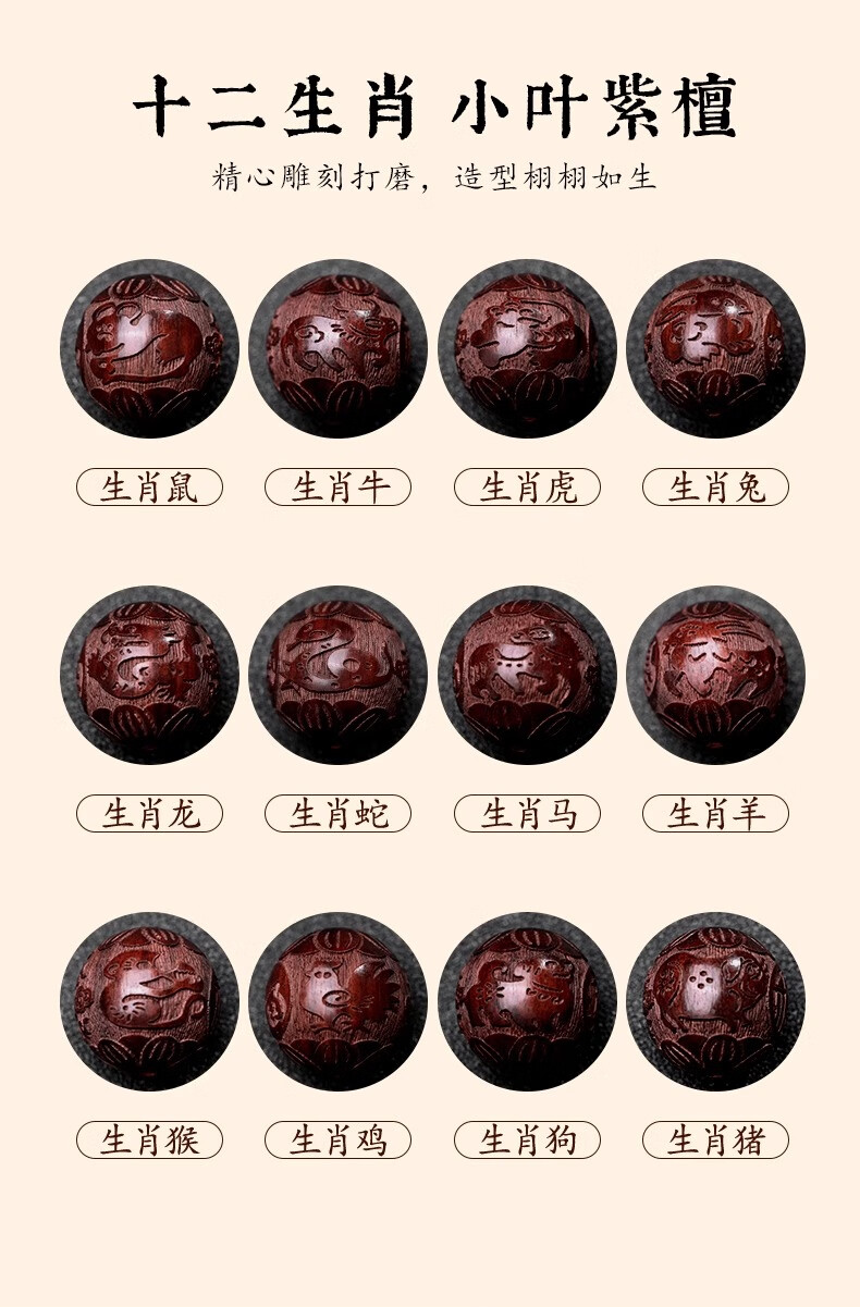 Yulanxuan Small Leaf Rosewood Bracelet Men's Twelve Zodiac Carved Sandalwood Transfer Beads Authentic Indian Sandalwood Plate Play Wenwan Buddha Beads Snake Style 12mm 17 Small Leaf Rosewood