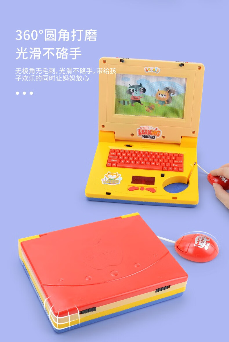 尹其英文仿真笔记本电脑学习机可伸缩鼠标声光儿童早教玩具礼物 英文版-蓝色鼠标可伸缩