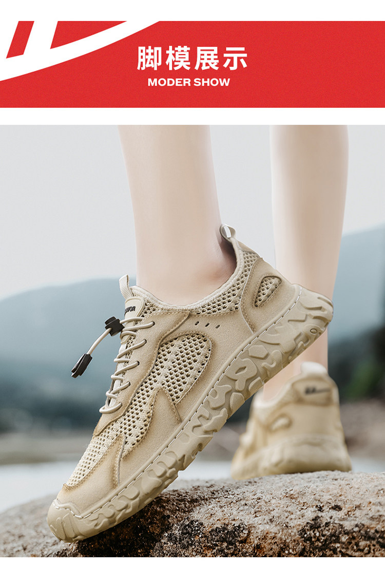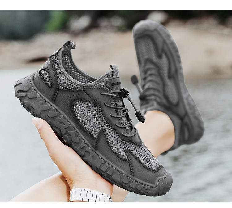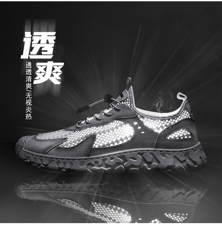 Herrenschuhe der Marke Hui Li, sommerliche atmungsaktive Mesh-Schuhe, dünne, hohle Mesh-Freizeitsportarten, keine Schnürsenkel, leichte und nicht stinkende Füße