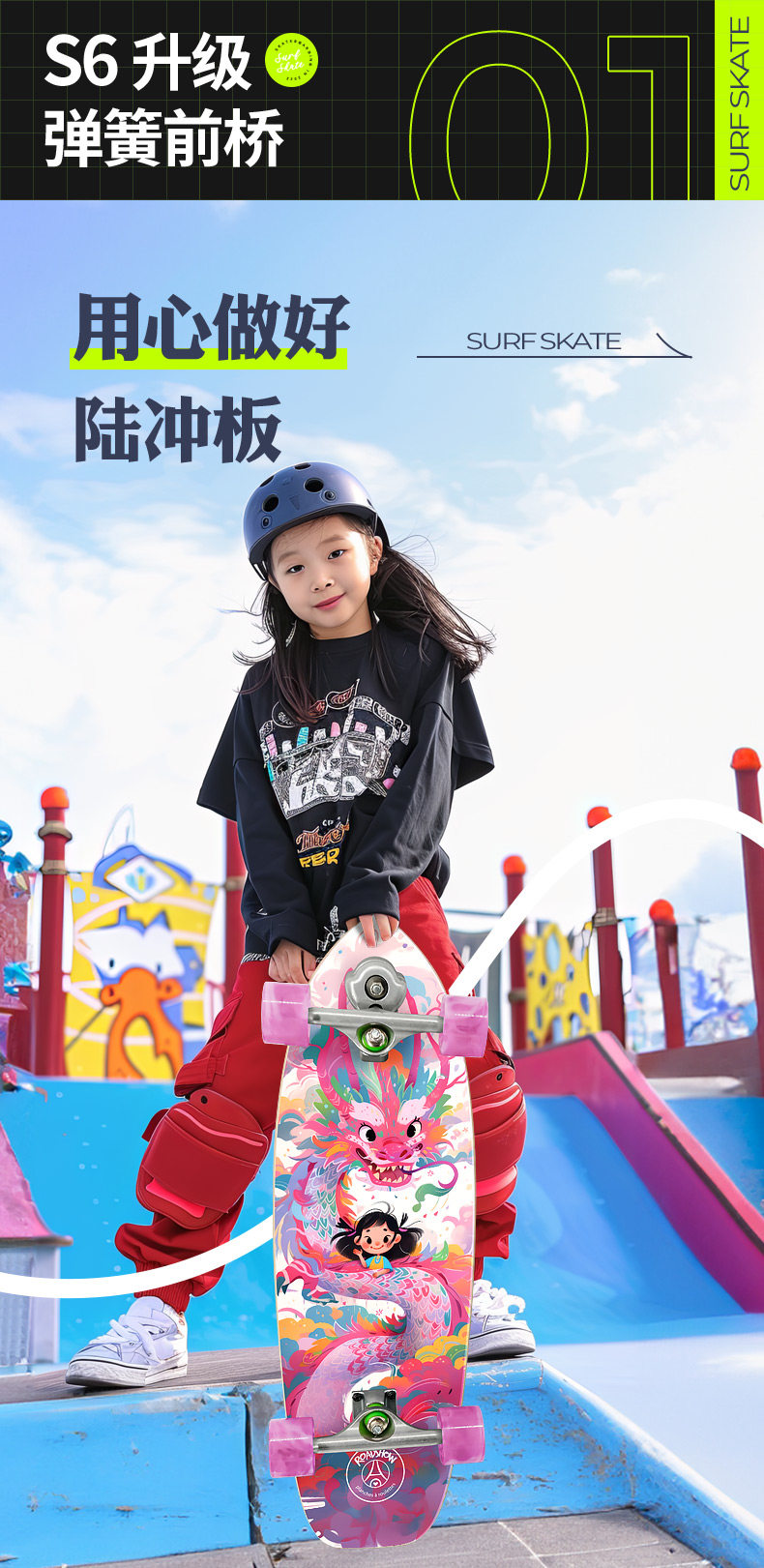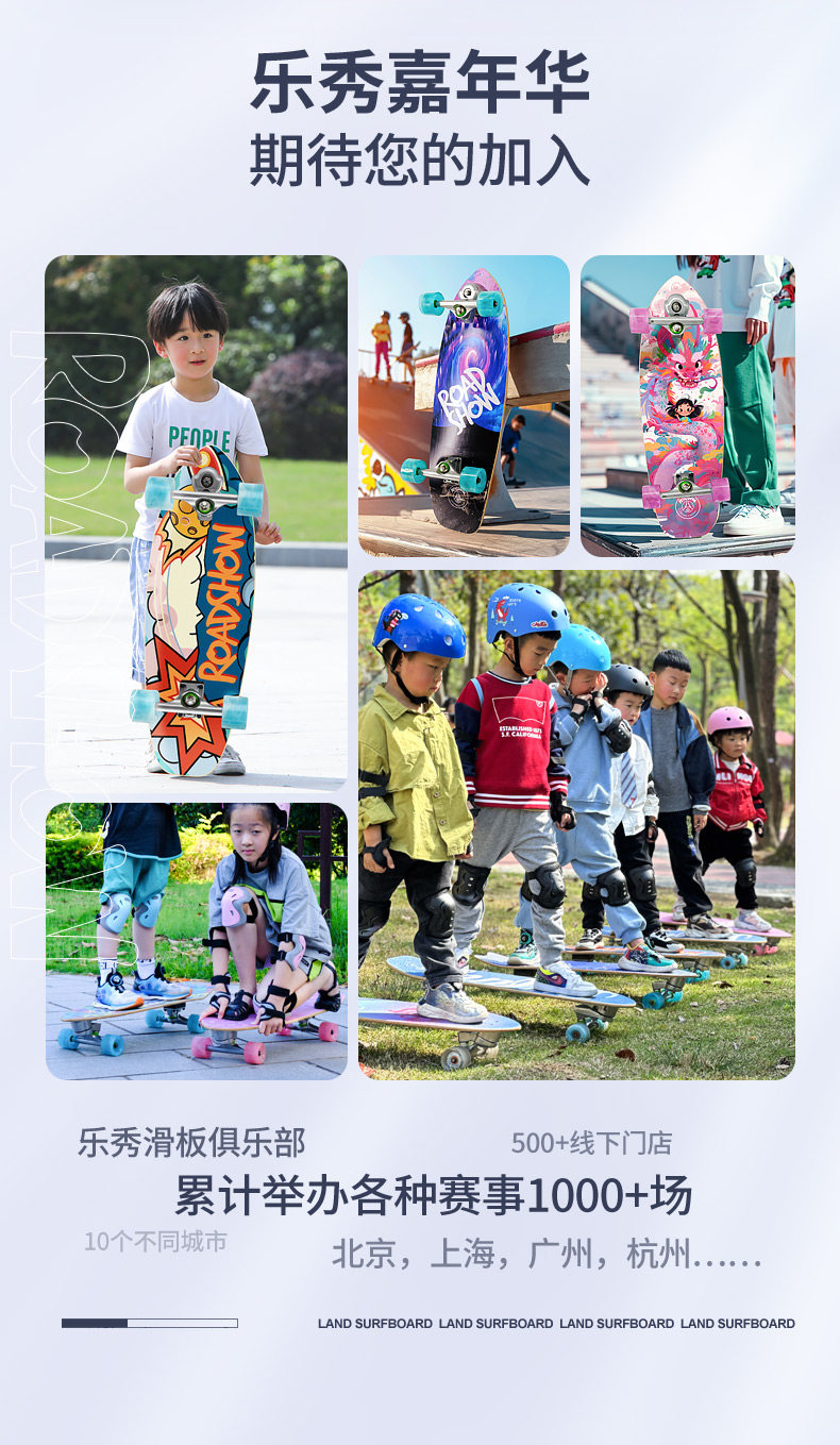 乐秀陆地冲浪板儿童滑板车6到12岁女生专业路冲板滑板儿童初学者