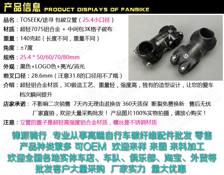 25.4 Caliber Carbon Fiber Mountain Bike Folding Bike Stem, Children's Bike Stem, Balance Bike Stem