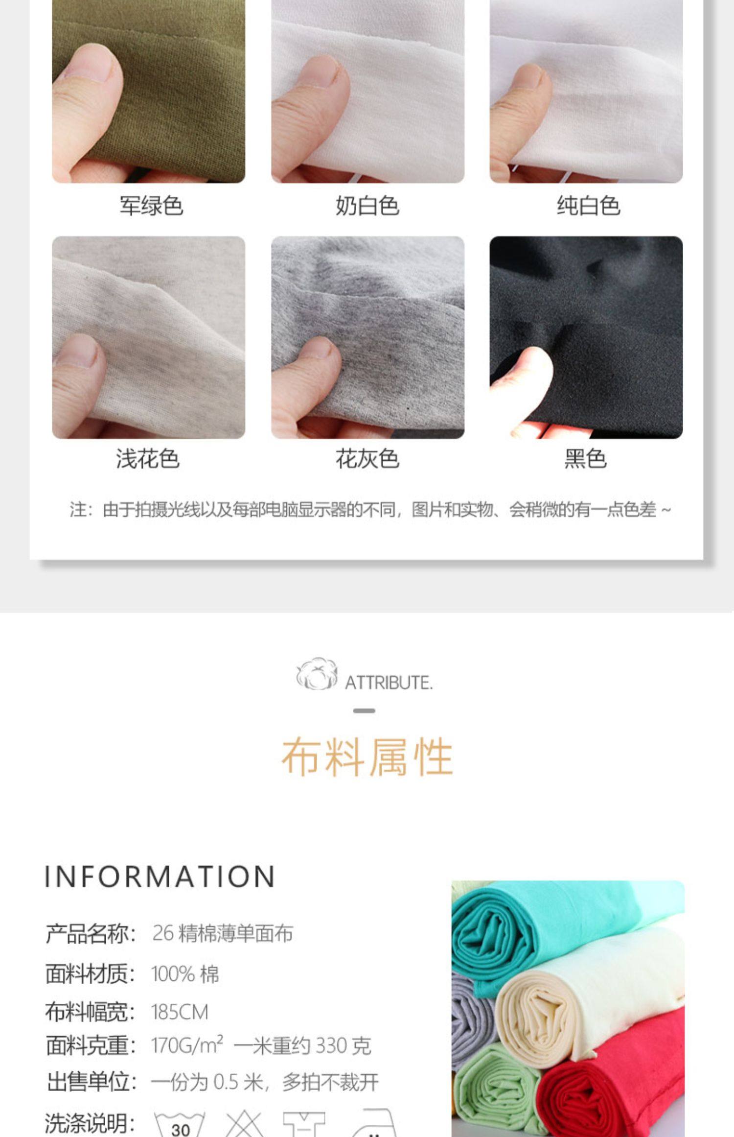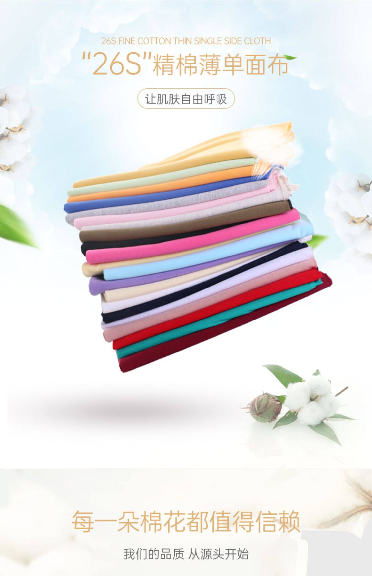 Pure Cotton T-Shirt, Solid Color, Single-Sided Jersey Knit Fabric, Baby Clothes, Summer Thin Breathable Plain Weave Fabric, Xinjiang Cotton Fabric