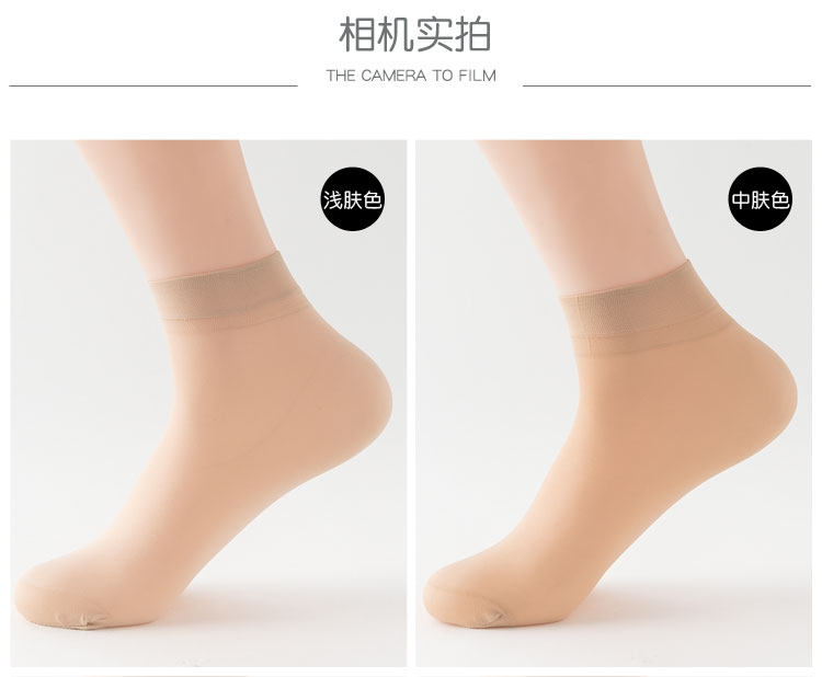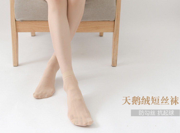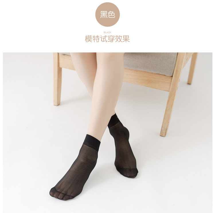 20 Pairs of Velvet Core-Spun Silk Flesh-Colored Women's Short Stockings, Anti-Snagging, Thin, Spring and Summer Black Stockings, Short Socks