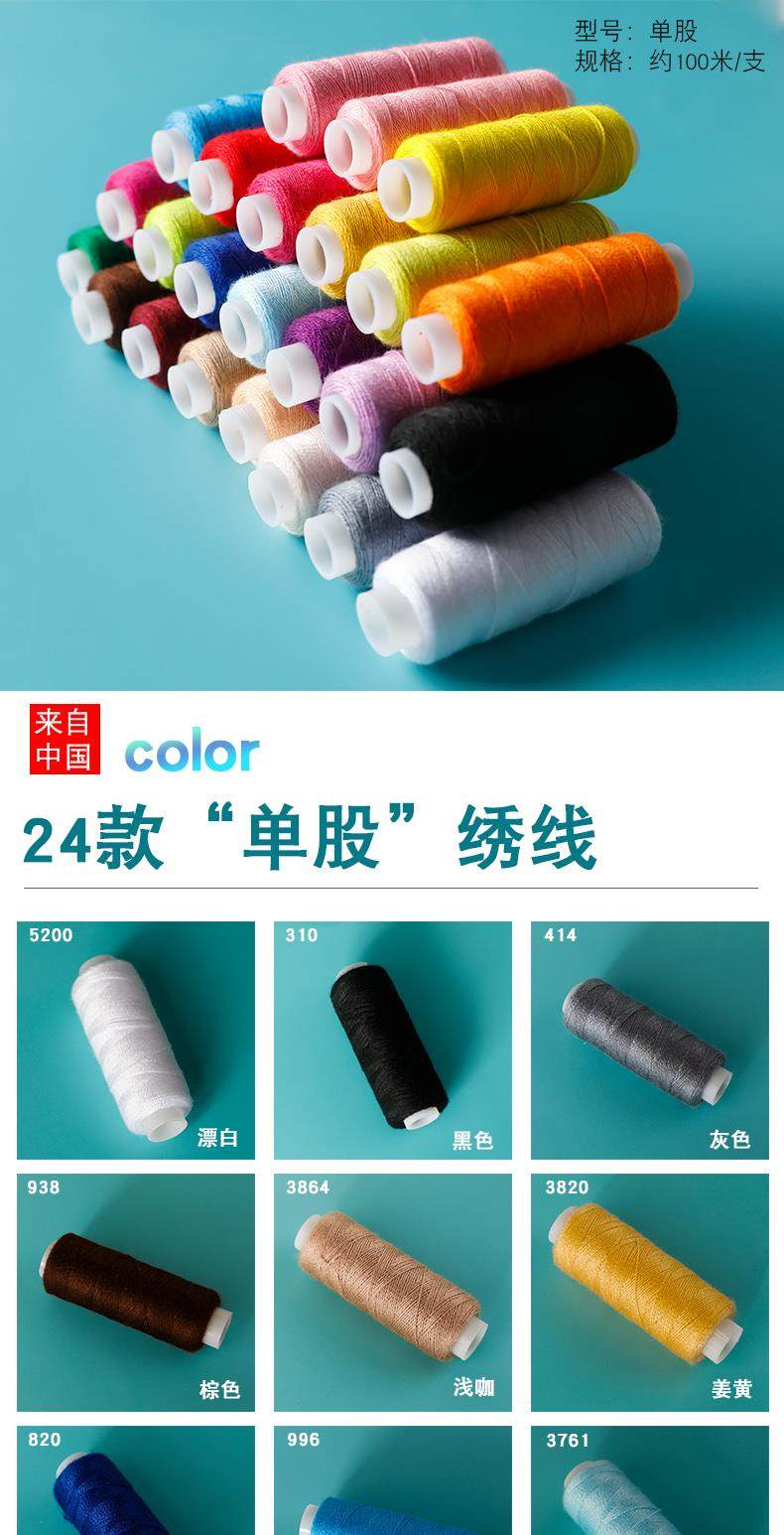 单股刺绣线绣花线十字绣线棉线衣服diy刺绣用线补线手工diy绣线