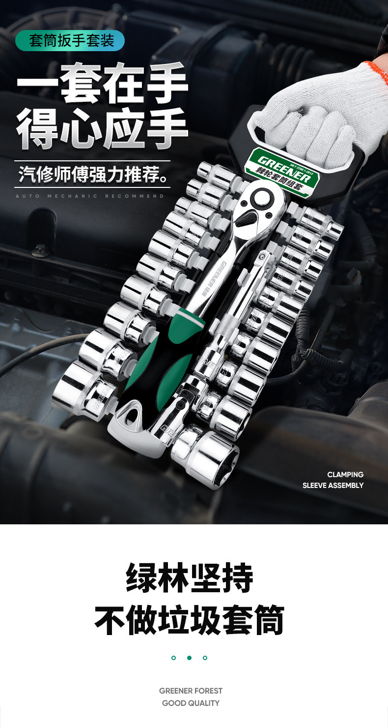 Green forest ratchet sleeve wrench set Wan wrench multifunctional outer hexagon quick wrench can auto repair tool
