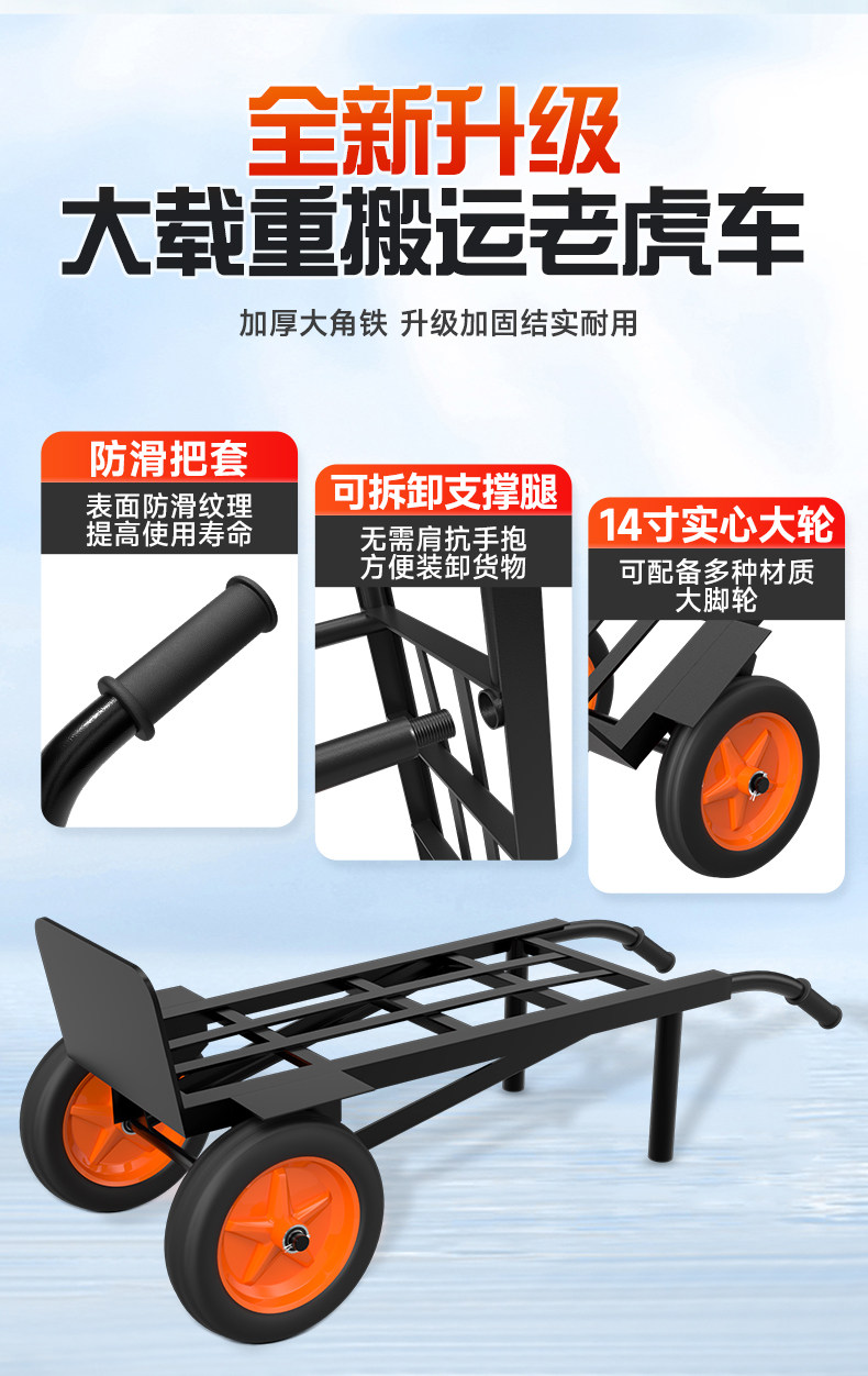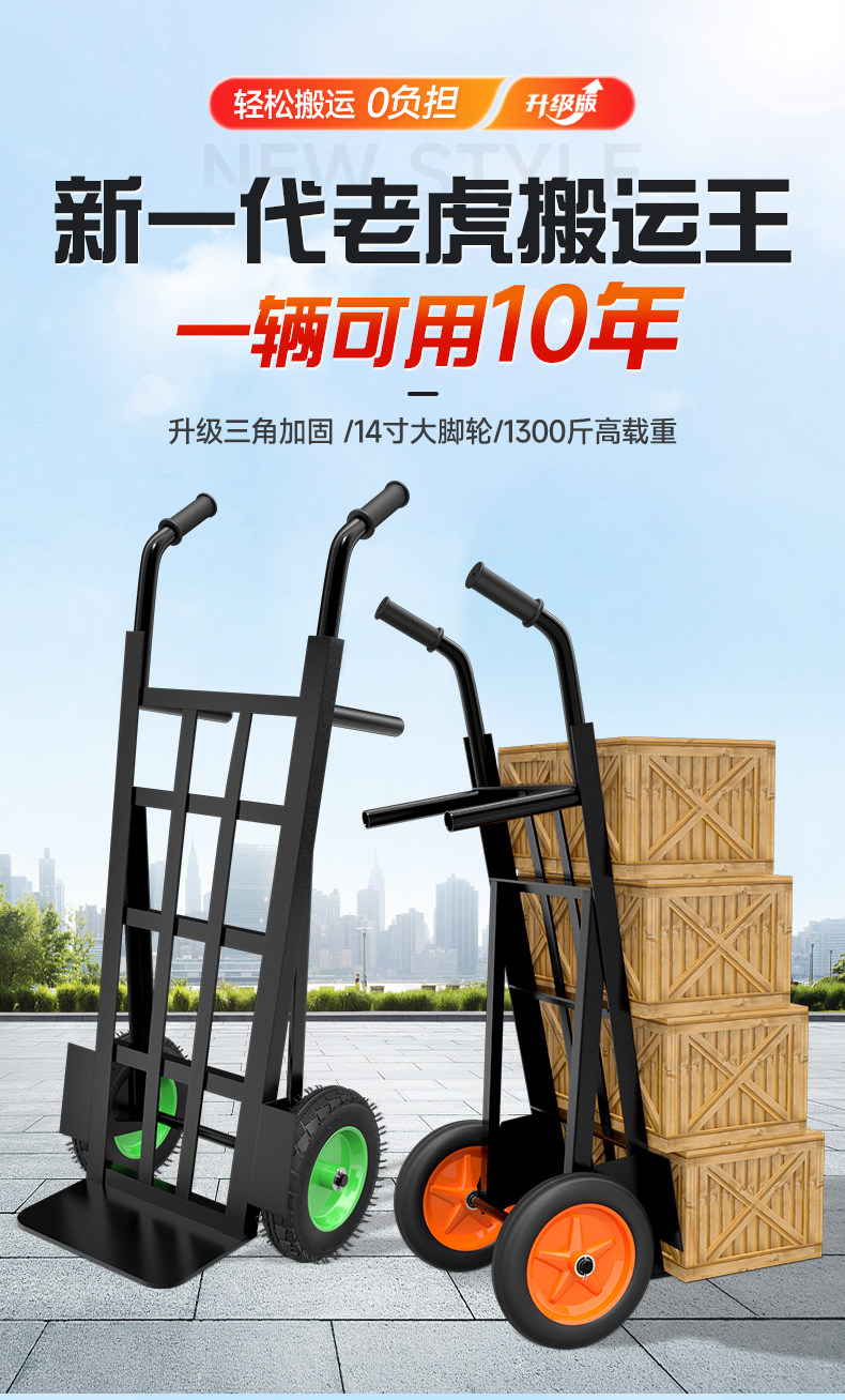 Tiger Auto Zweirädriger handgezogener Trolley Trolley Pull Truck Handanhänger Sackkarre Klapplast King