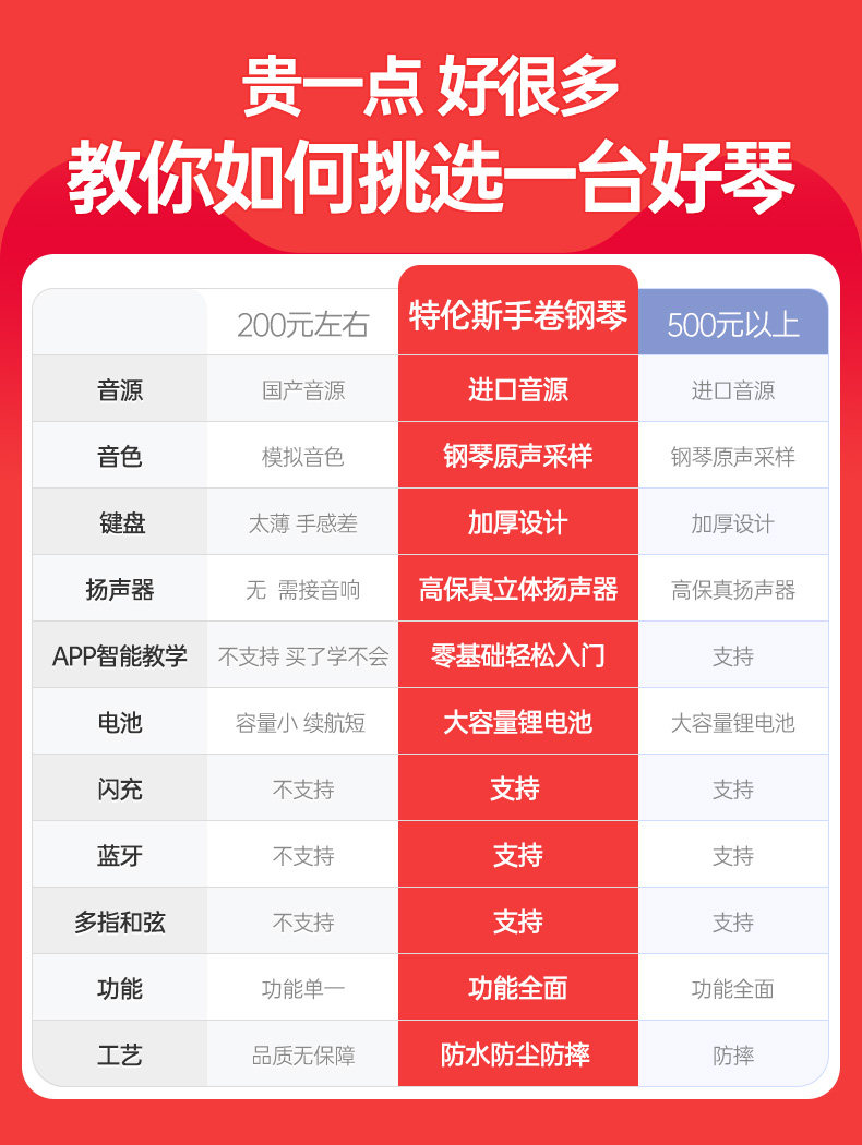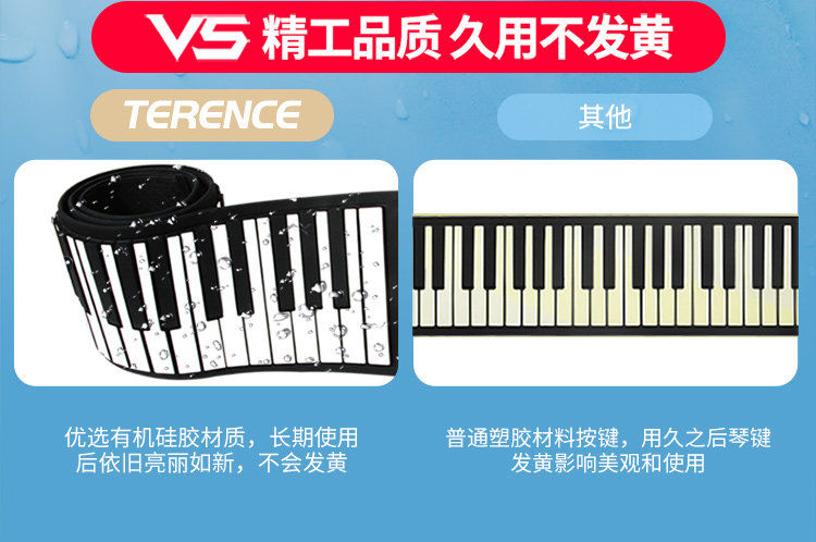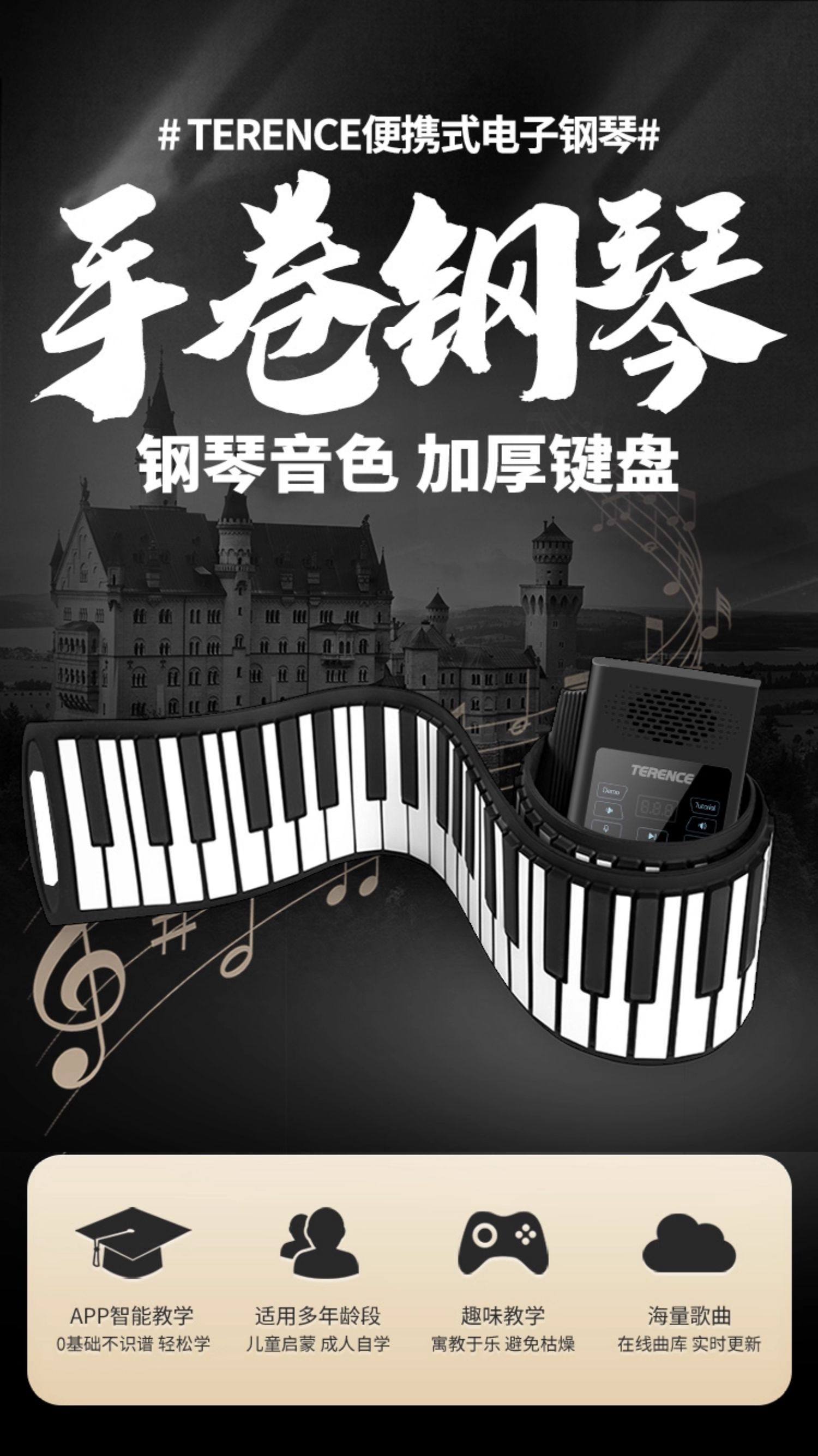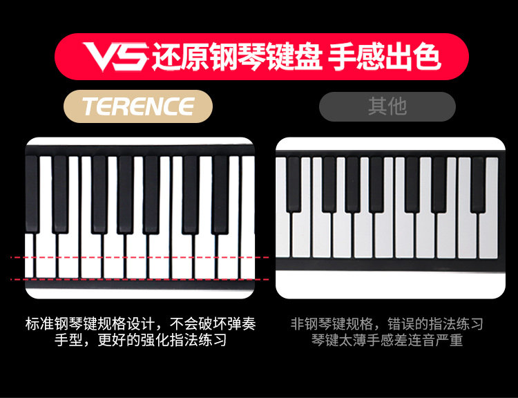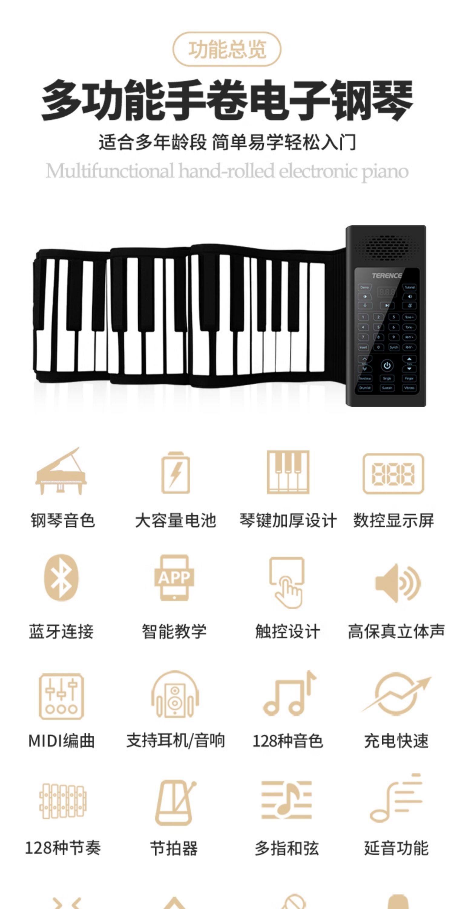 特伦斯手卷电子钢琴专业88键盘加厚初学者家用练习神器折叠便携式