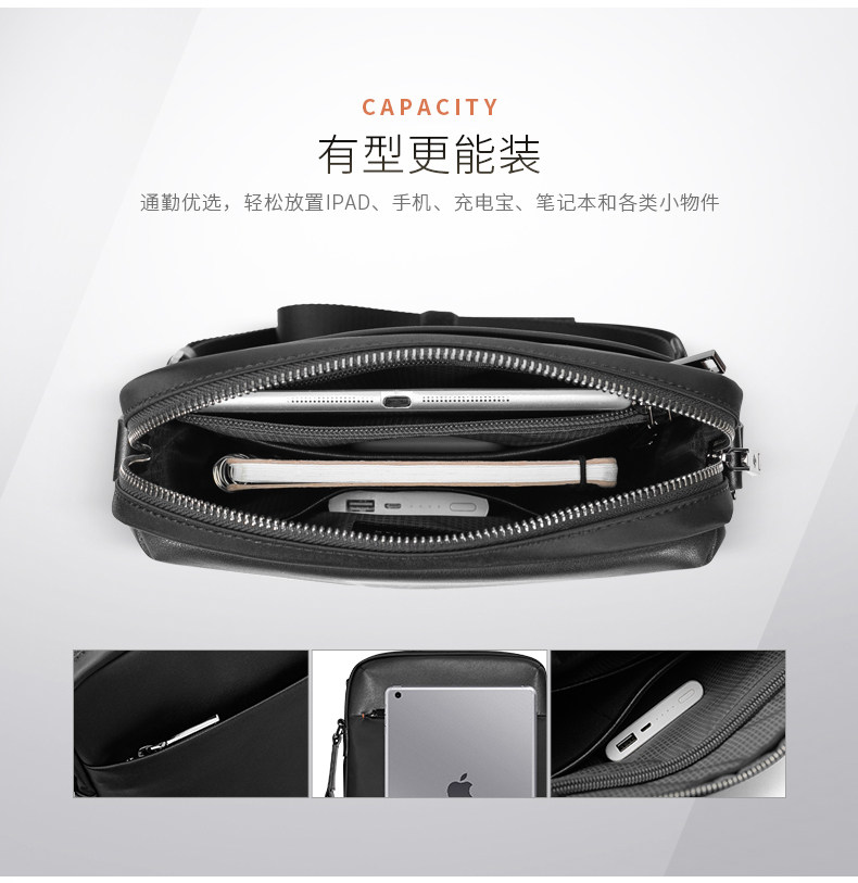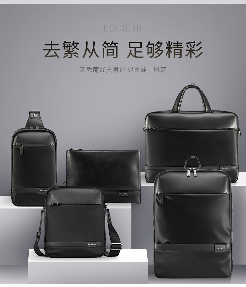 [New Year's Gift] Samsonite Men's Crossbody Bag Leather Briefcase Shoulder Bag Large Capacity Lightweight Single Shoulder Bag Tn5