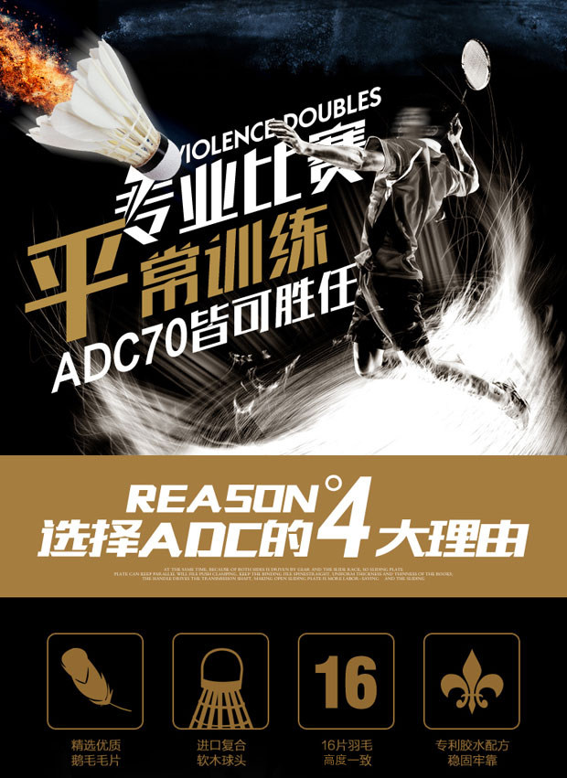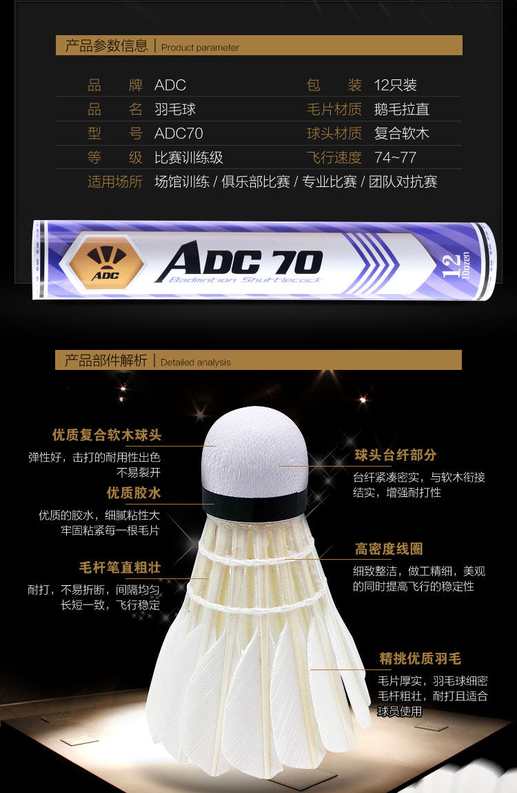 ADC70羽毛球三星中极星 A+60高品质东北鹅毛拉直耐打稳定训练比赛