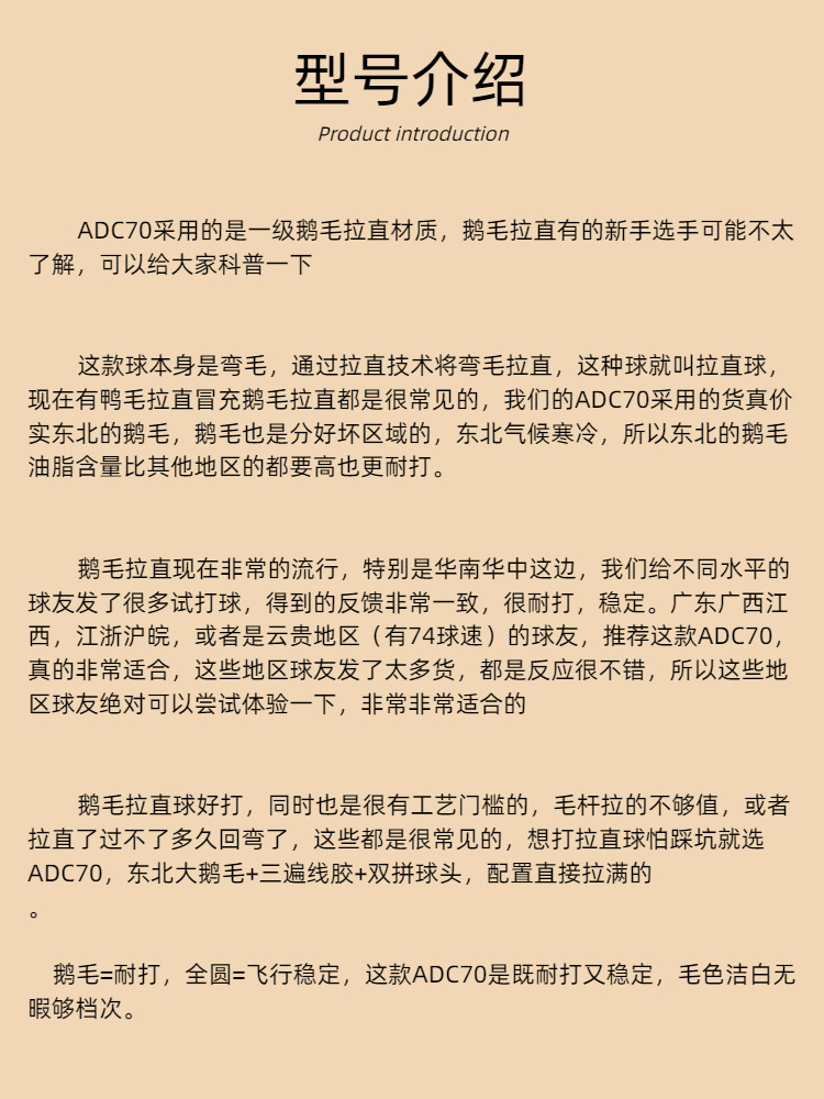 只数 74速 ADC70(云贵等高原地区),76速 ADC70(TOP级鹅拉直),77速 ADC70(TOP级鹅拉直)