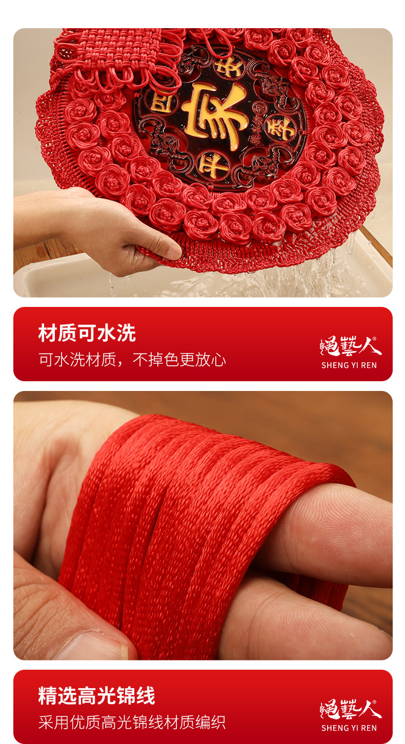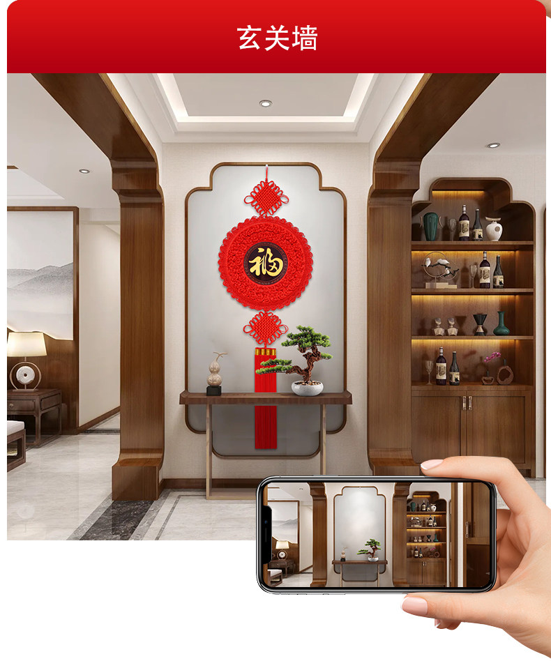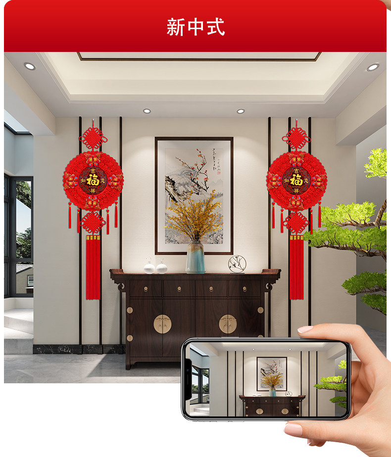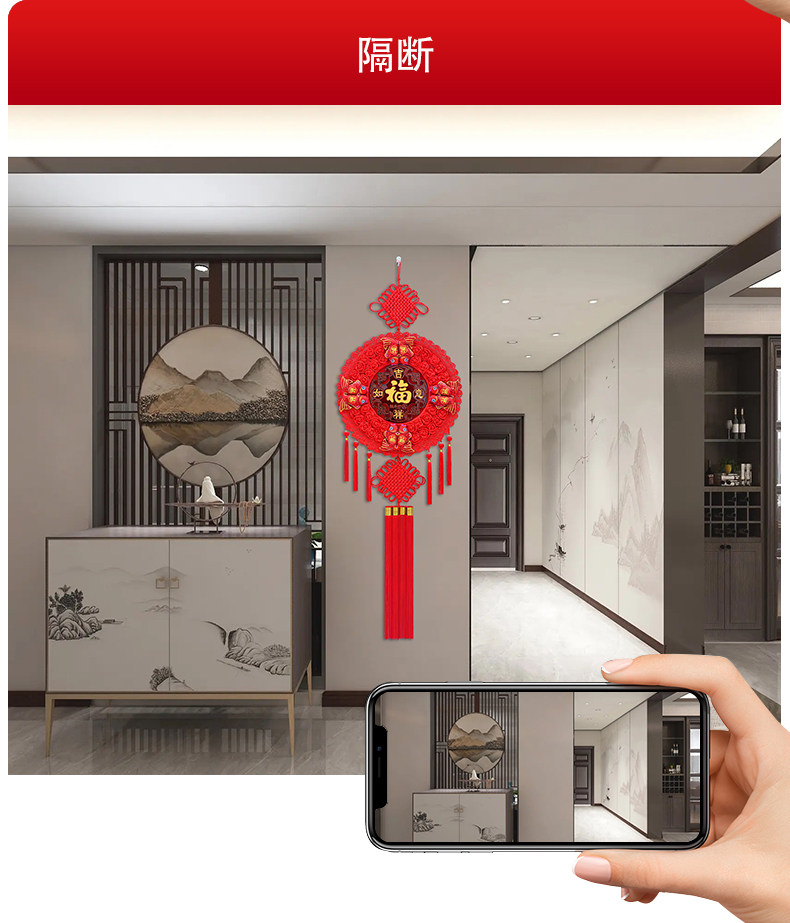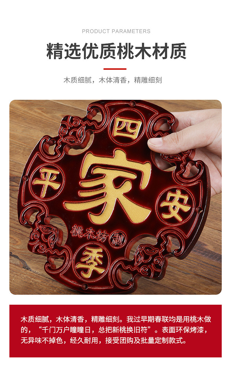 Round Chinese Knot Pendant, Large High-End Peach Wood Fortune Character Hanging Decoration for Living Room, Entrance Door, Spring Festival and New Year Decoration