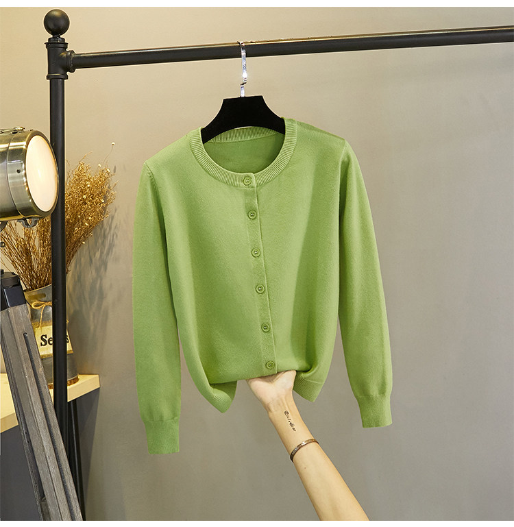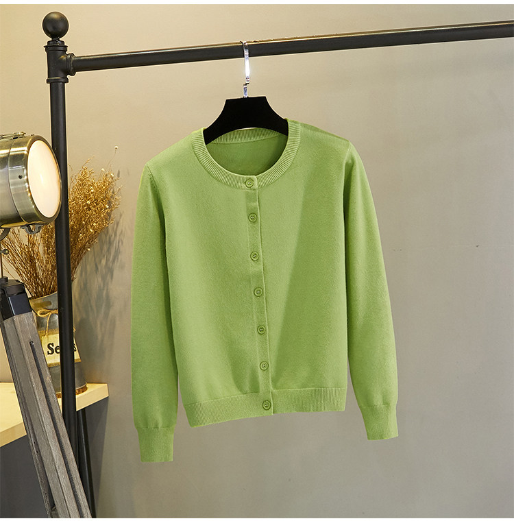 Новый кардиган-жакет 2025 года для женщин, вязаный укороченный приталенный свитер с круглым вырезом цвета авокадо для весны и осени, осенний топ.