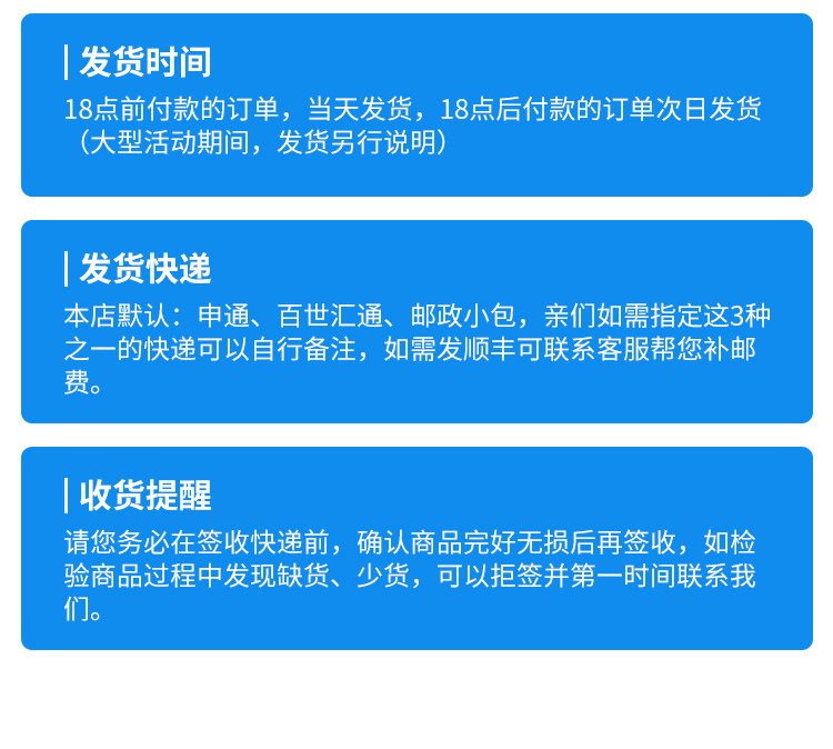 2)运费通常按每0.5公斤收费。因此,如果你购买的产品只有0.1公斤,那么你可以考虑一次购买2-3件,这不会增加你订单的运费。