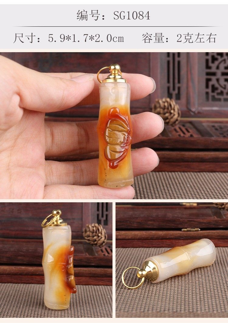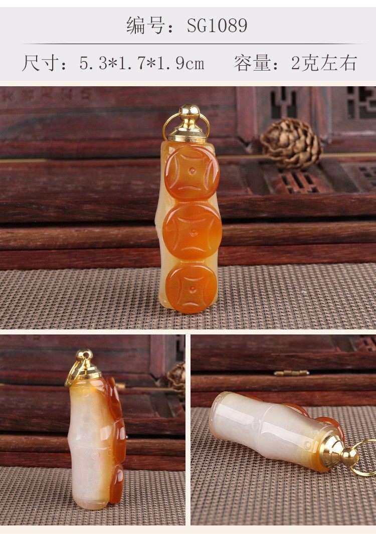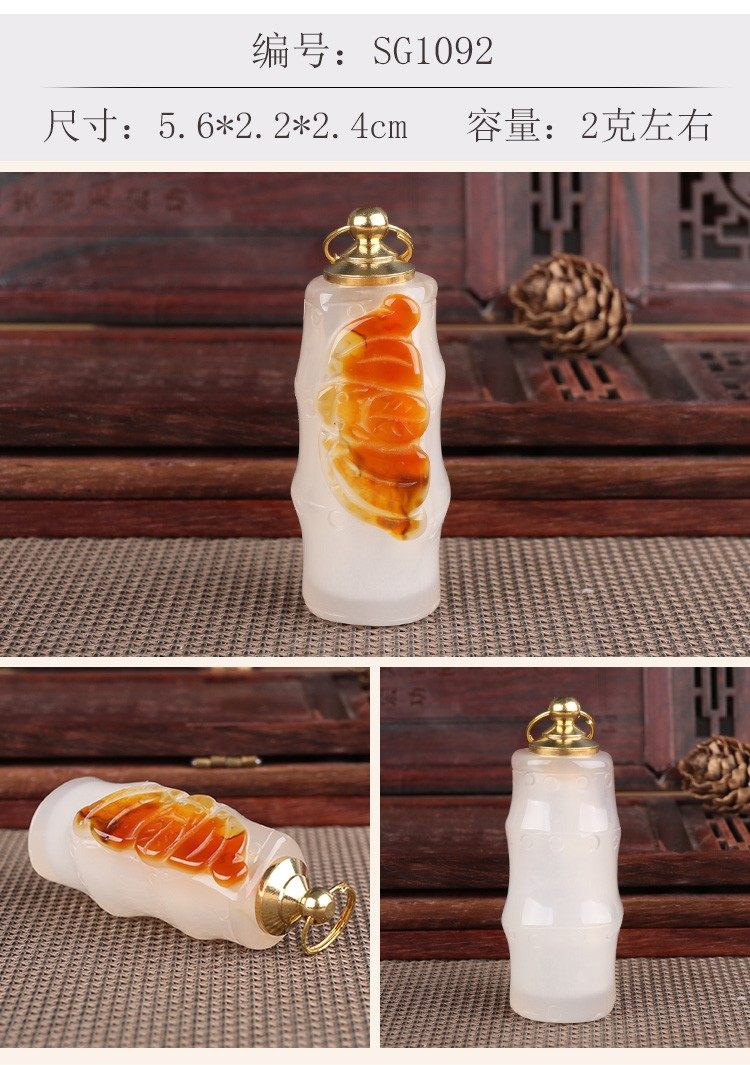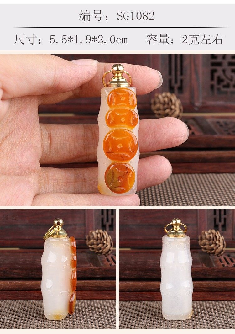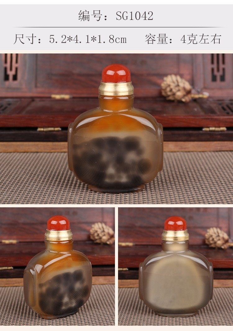 天然玛瑙玉石鼻烟壶 薄膛 纯手工手把件 装鼻烟粉 容量 3-5 克