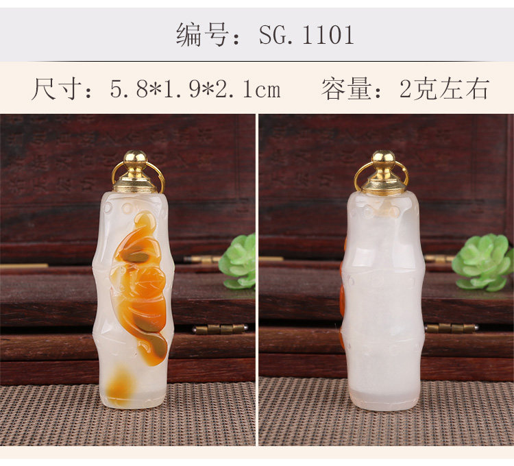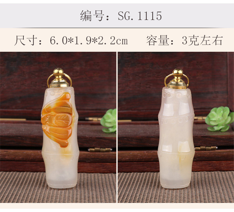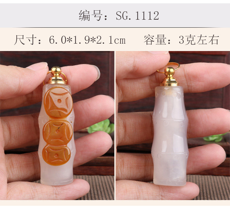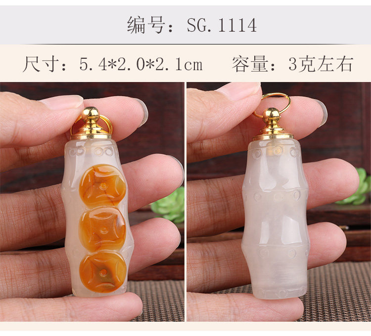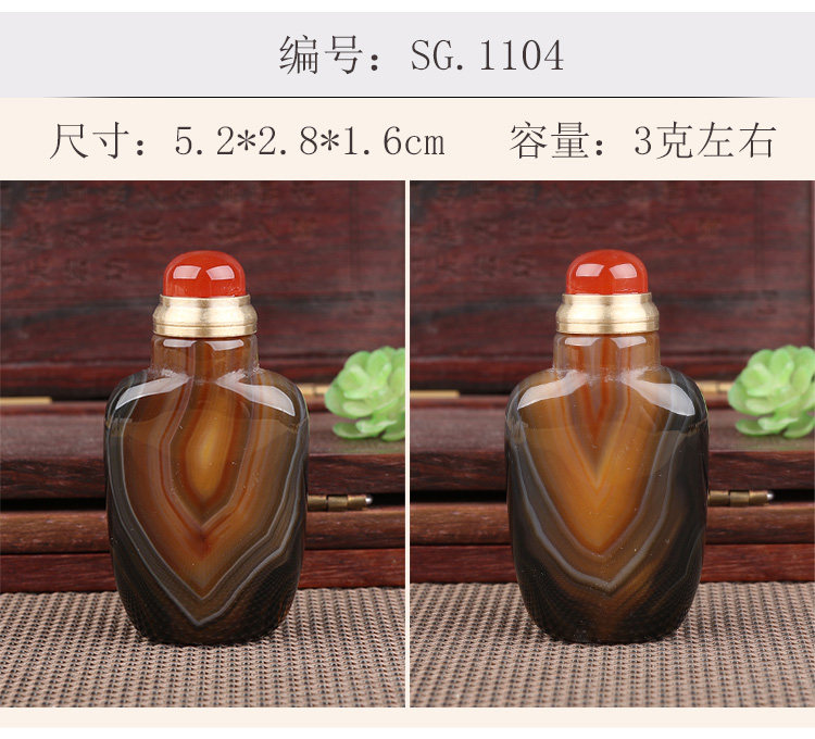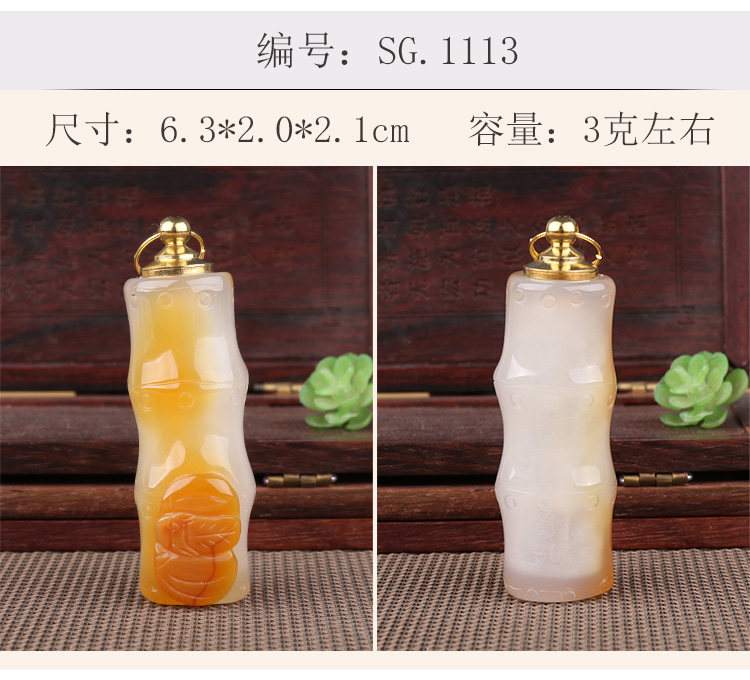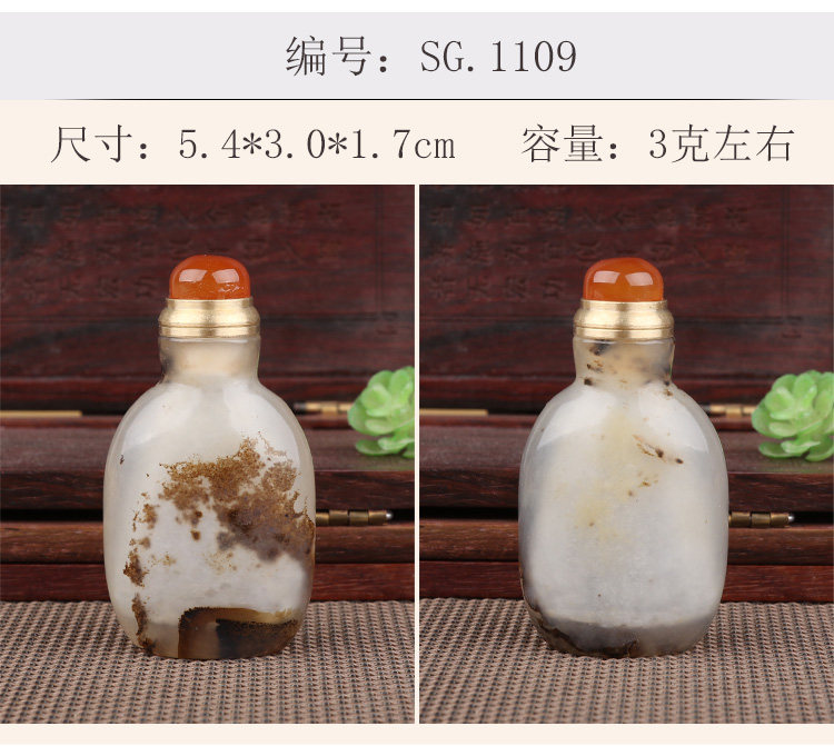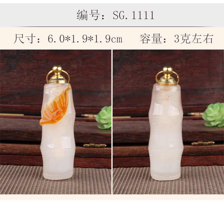 天然玛瑙玉石鼻烟壶 薄膛 纯手工手把件 装鼻烟粉 容量 3-5 克