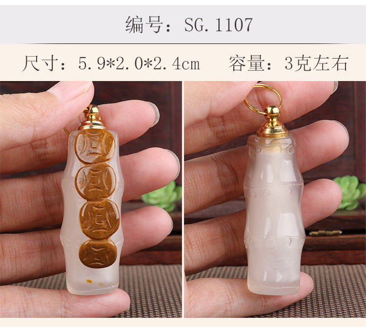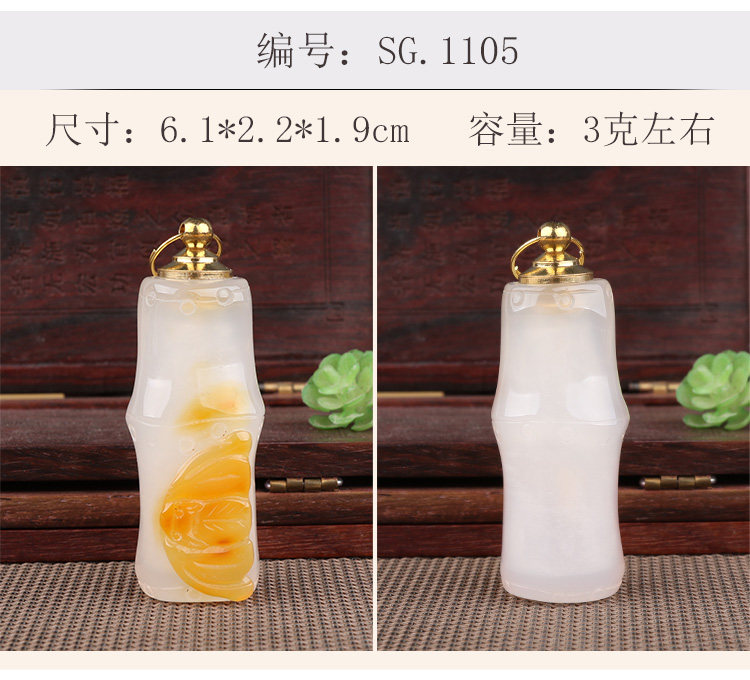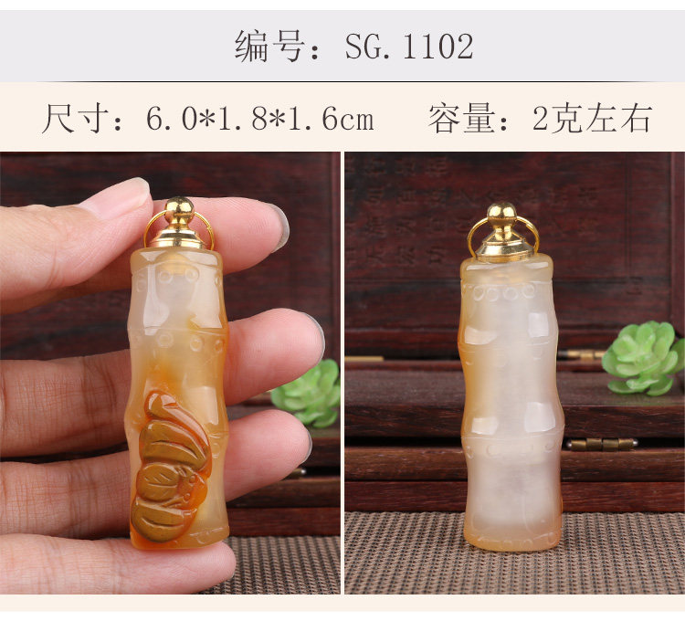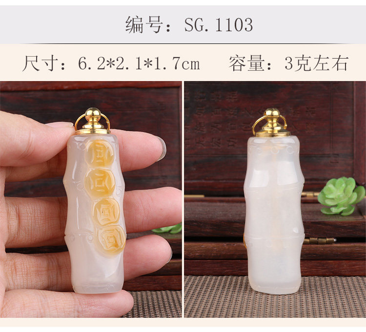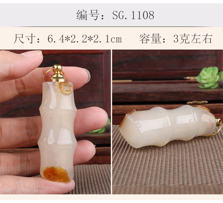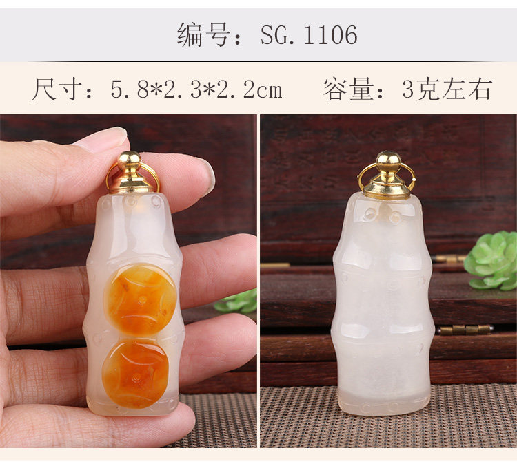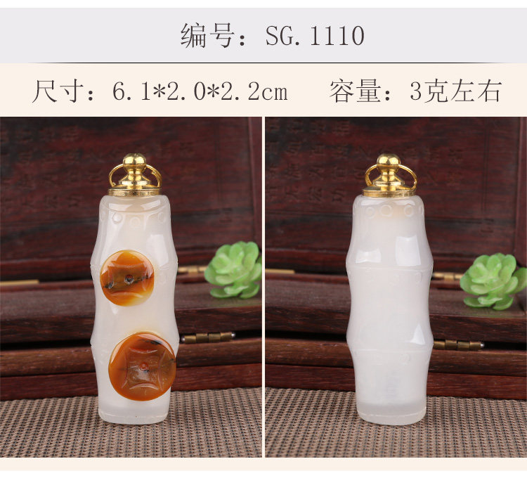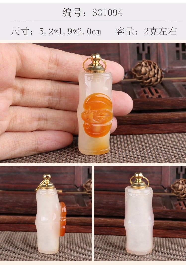 天然玛瑙玉石鼻烟壶 薄膛 纯手工手把件 装鼻烟粉 容量 3-5 克