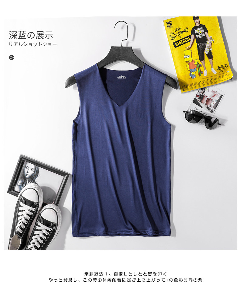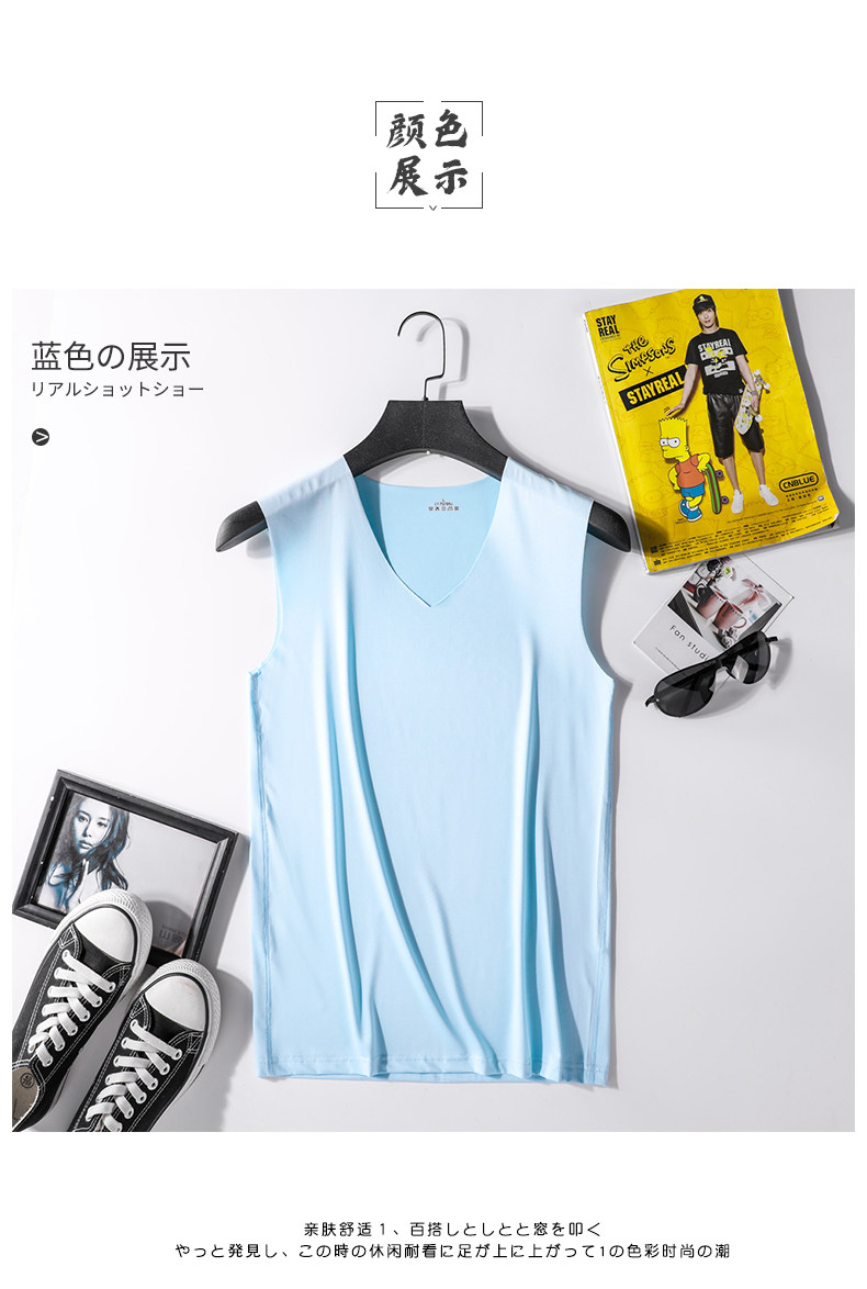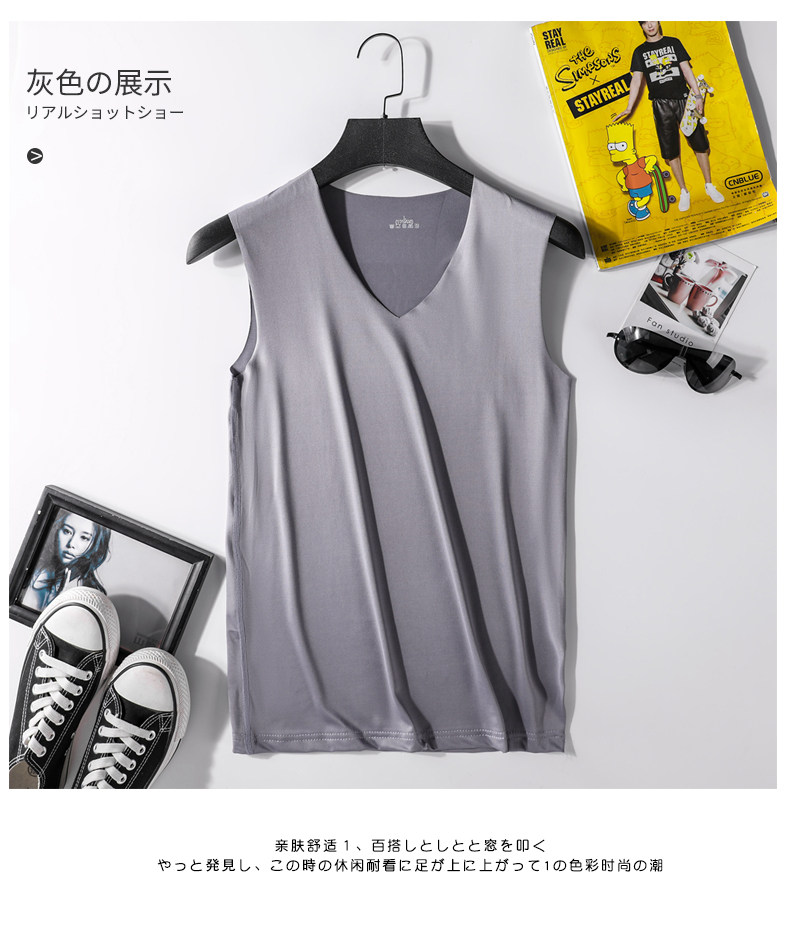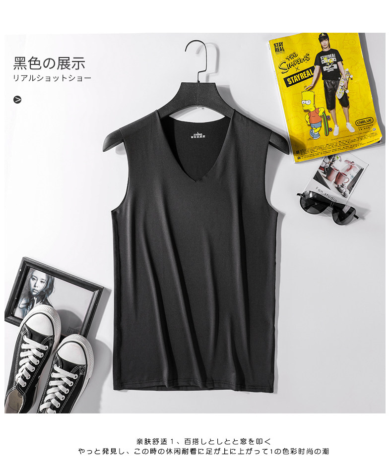 Summer Seamless Quick-Drying Sports Ice Silk V-Neck Wide-Shoulder Seamless Vest for Men, Slim-Fit Youth Sleeveless T-Shirt Vest Base Layer
