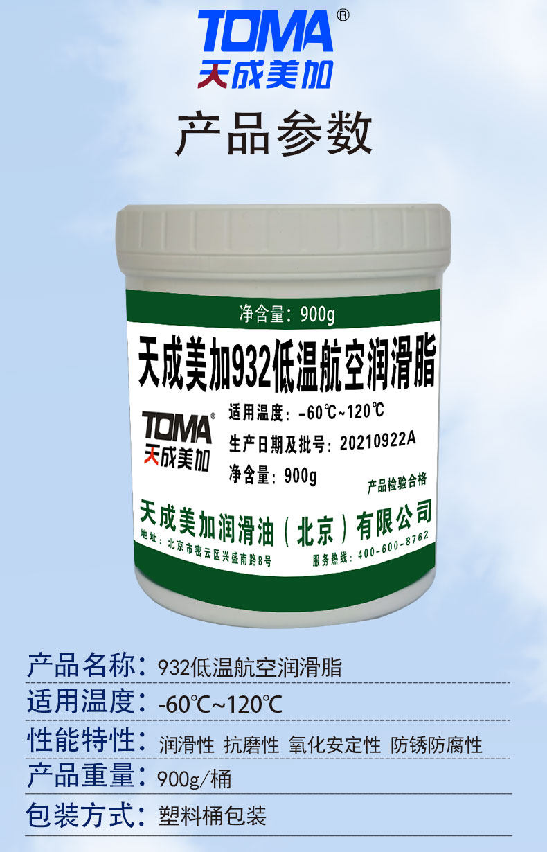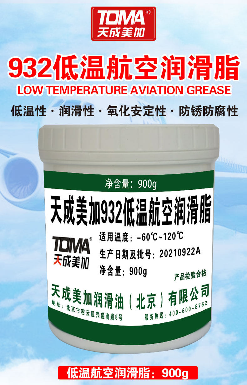 天成美加932低温航空润滑脂-60~120度 发动机附件低温润滑油900g