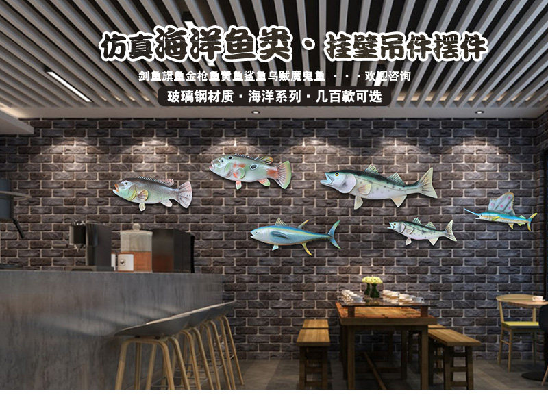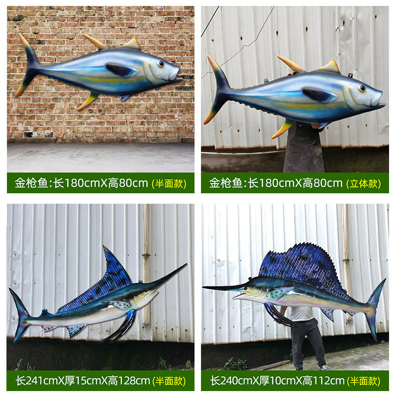 Promotional Outdoor Fiberglass Ocean Series Simulated Fish Model Decoration Wall-Mounted Shark Head Ornaments Resin Crafts