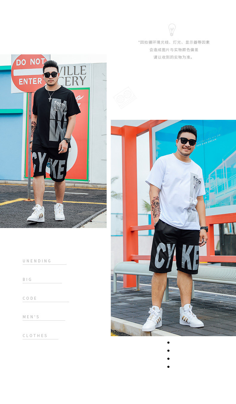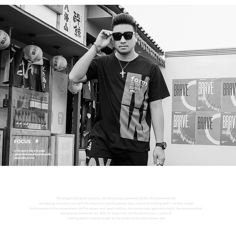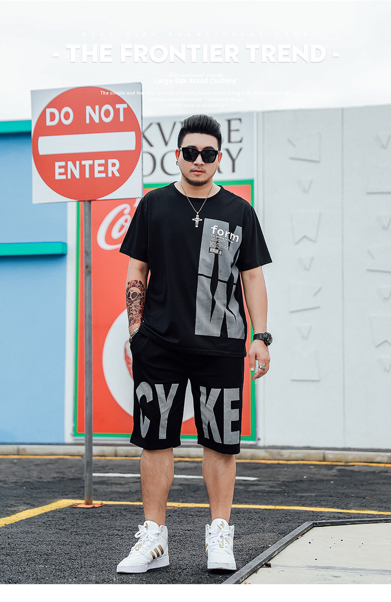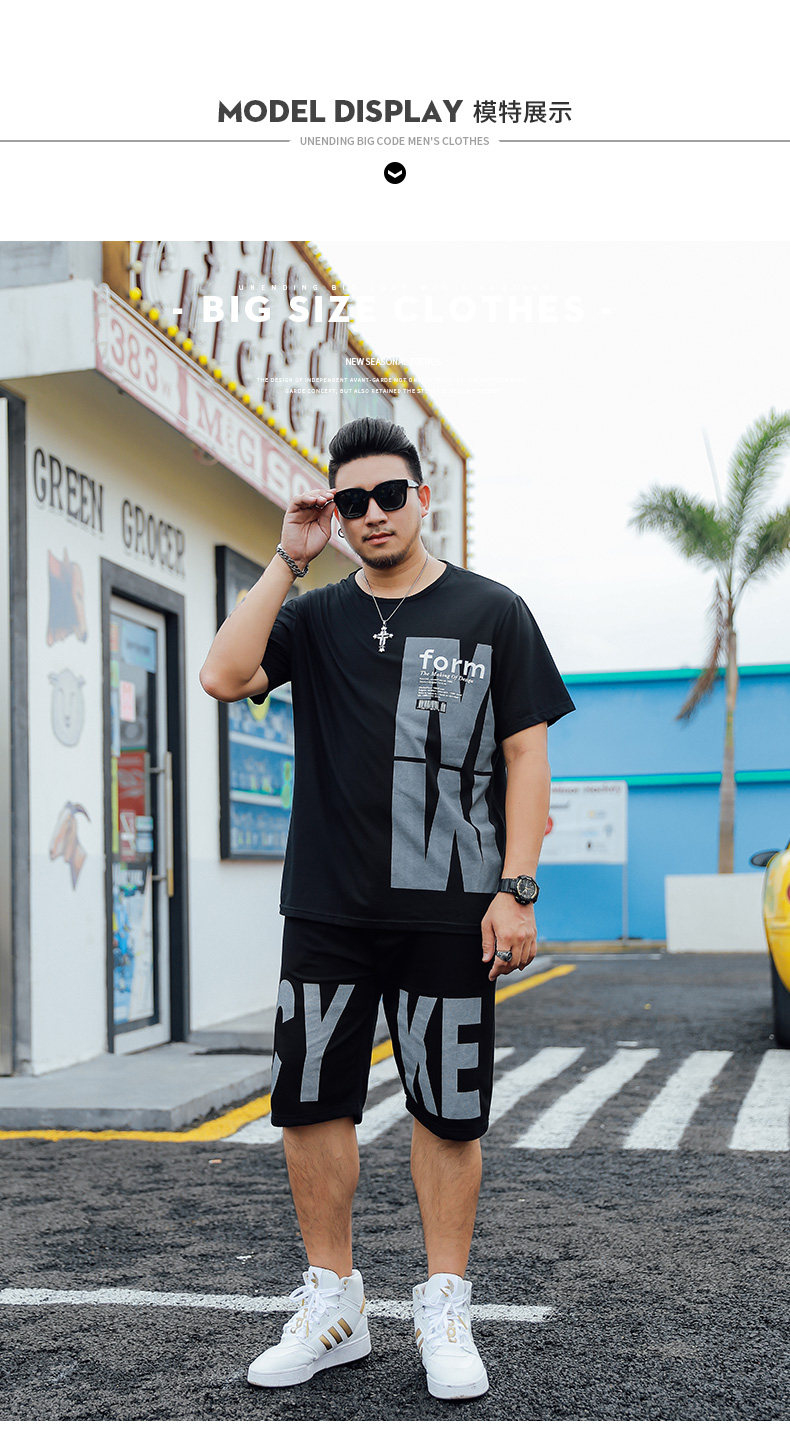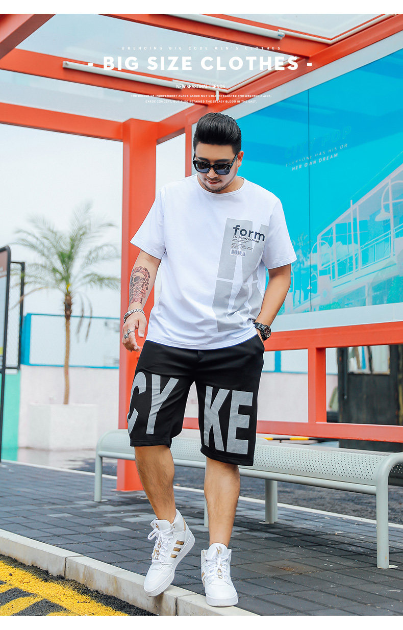 Trendiges Kurzarm-T-Shirt für fette Männer plus fette plus Größe lose Sommer dünne Viertelshorts lässiger dicker Mannanzug