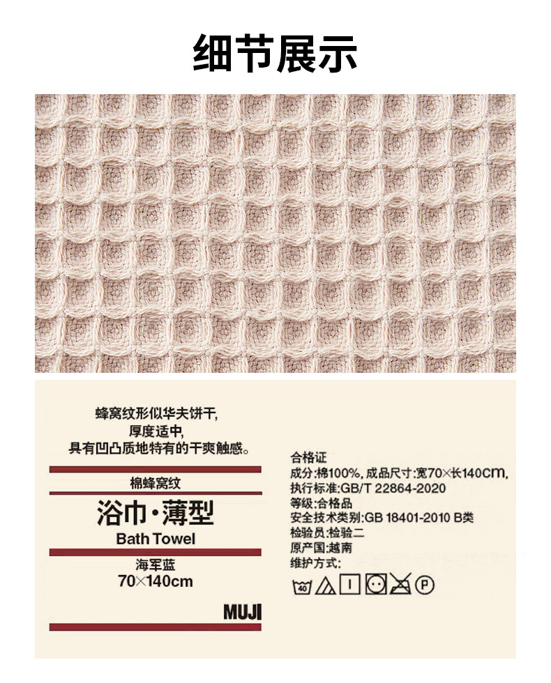 MUJI 棉蜂窝纹 浴巾 薄型 纯棉柔软