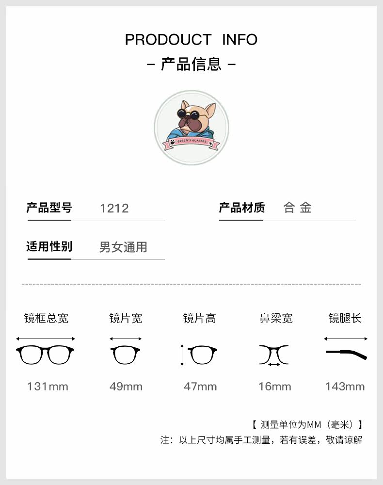 Metal Ultra-Light Korean-Style Myopia Glasses Frame for Women, Can Be Fitted with High Prescription Lenses, Small Frame Eyeglass Frame for Men, Trendy Ins Style