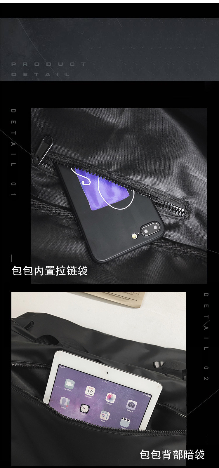 内部结构 拉链暗袋,证件位