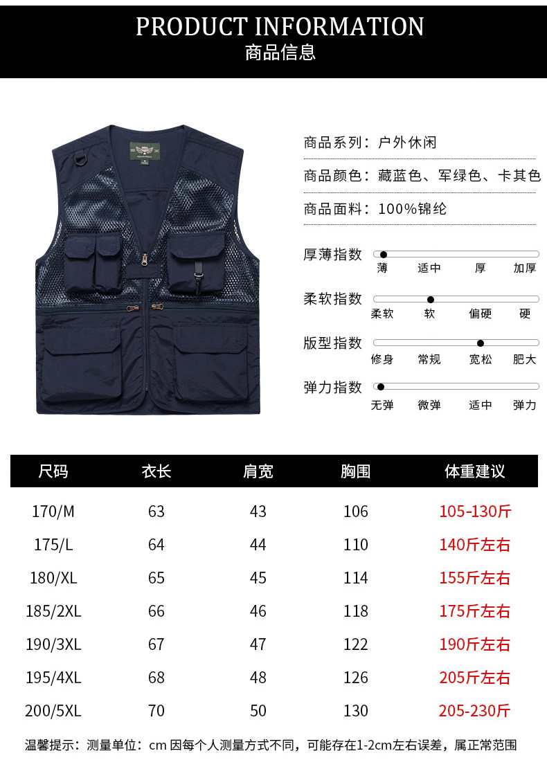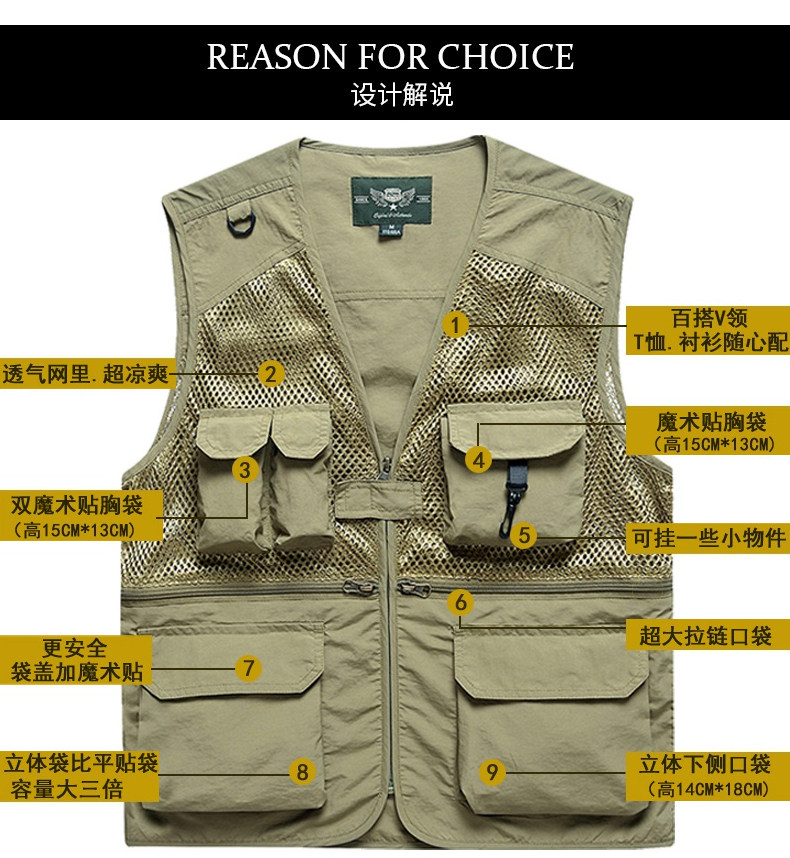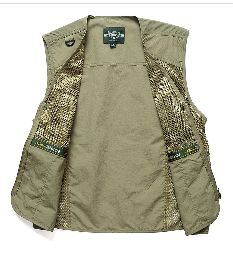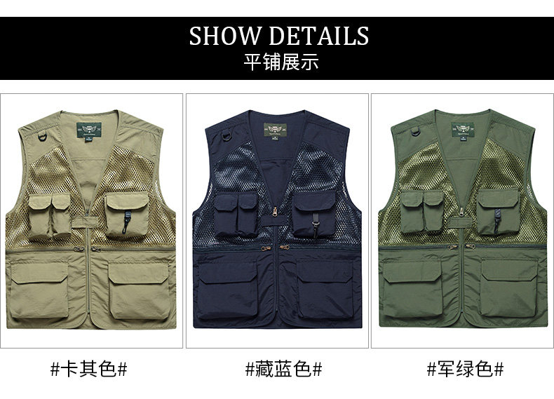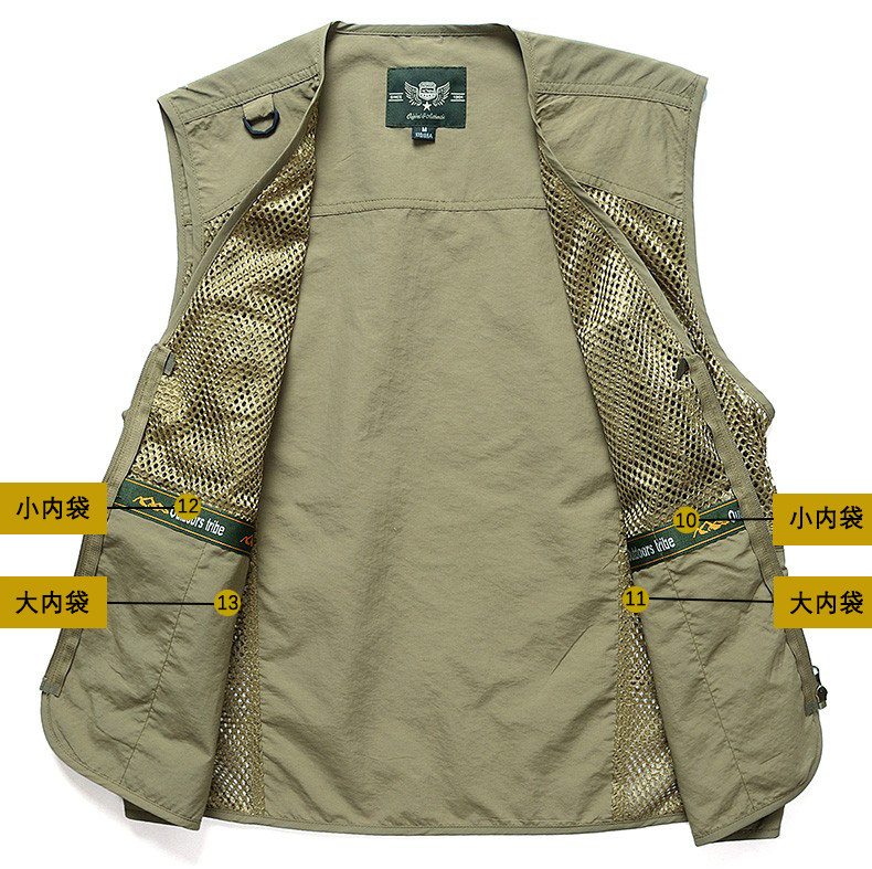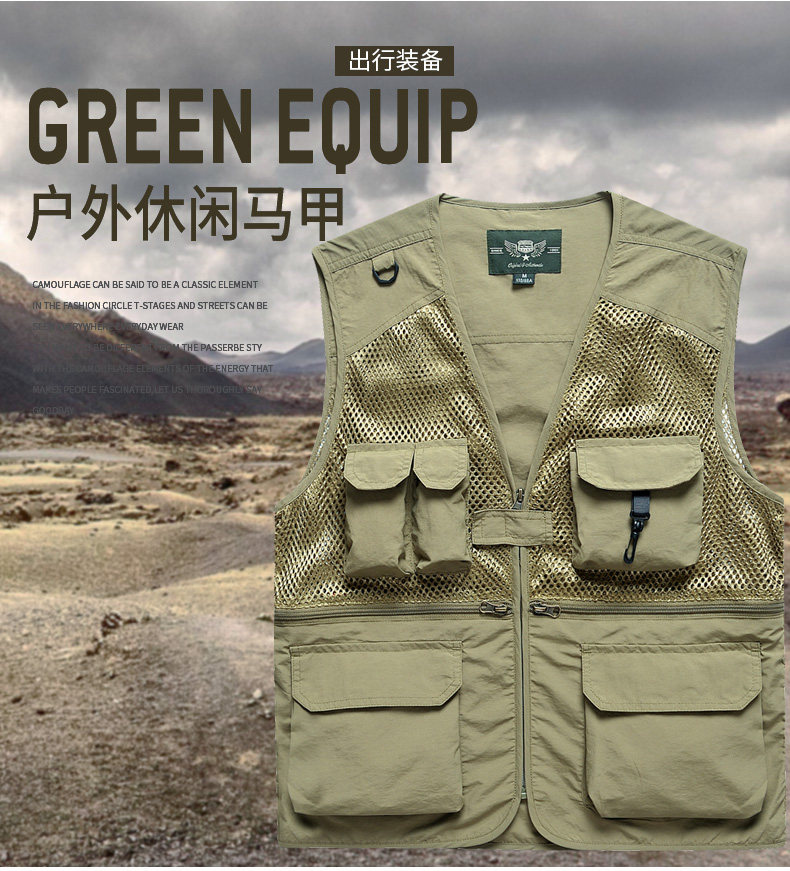 摄影马甲男户外钓鱼旅游登山背心v领宽松大码多袋工装男马夹薄款