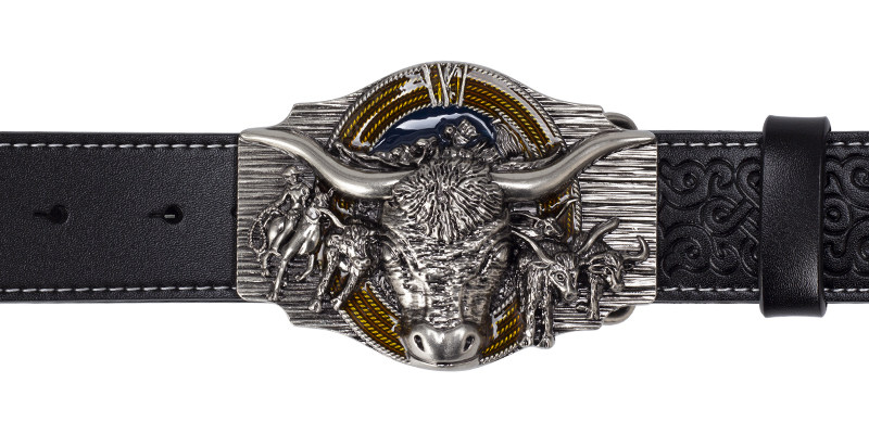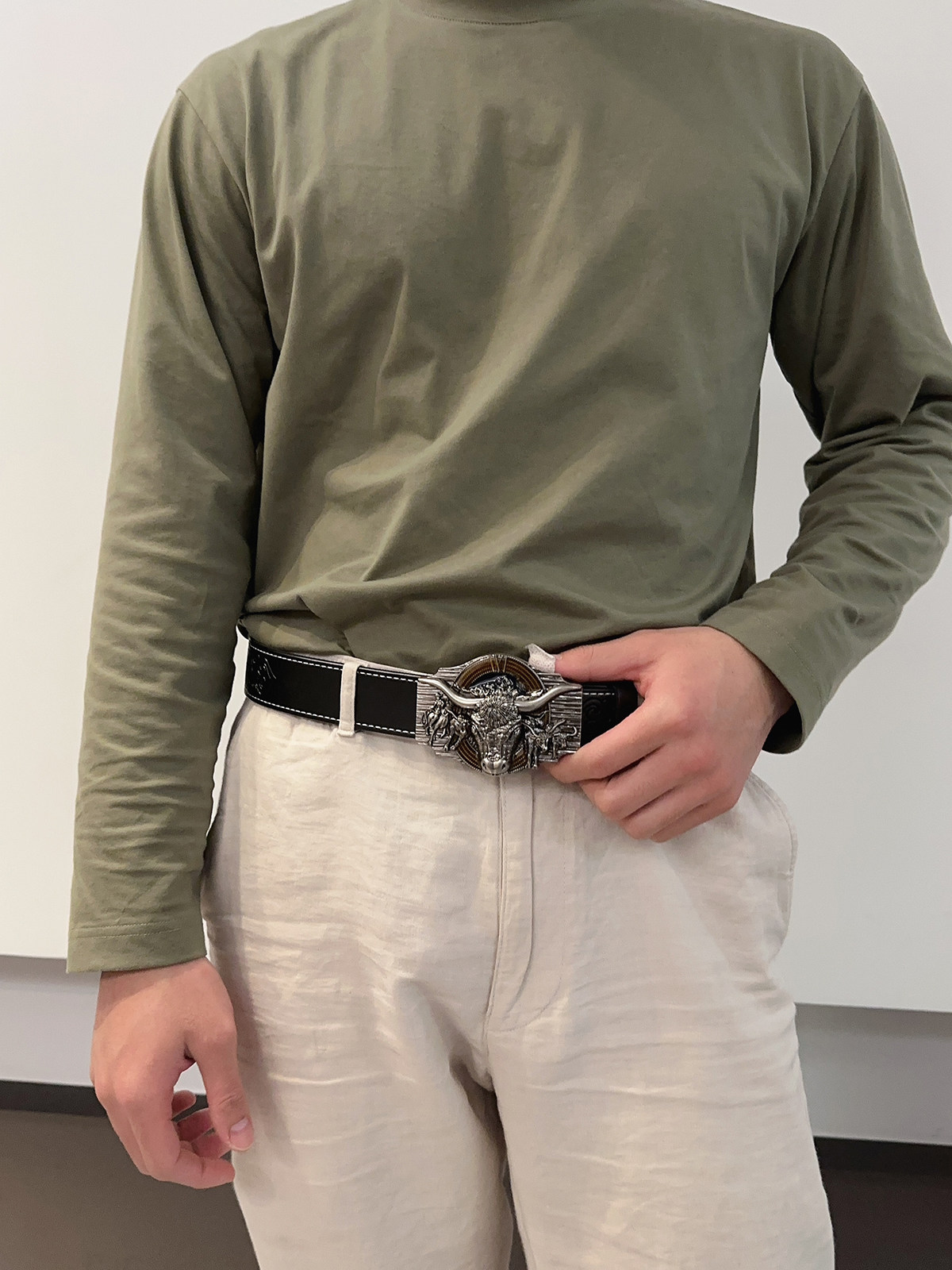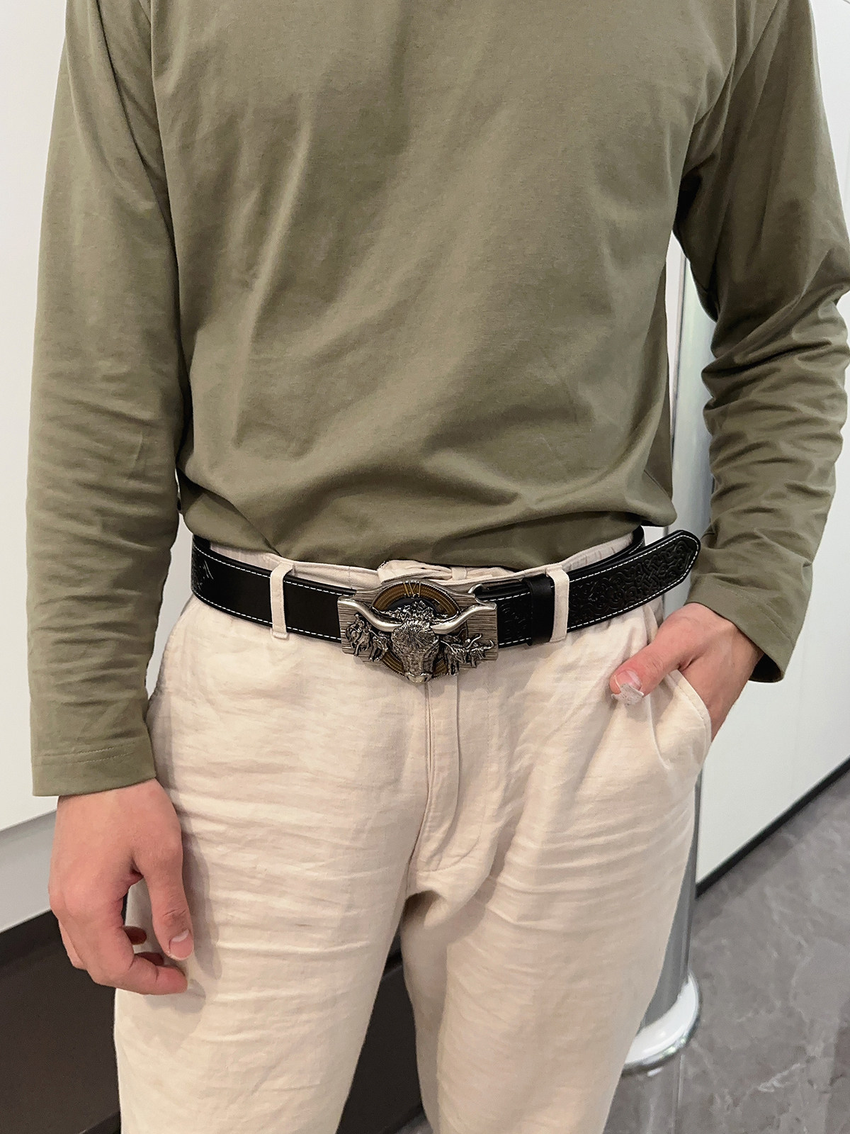 牛头合金皮带扣真皮腰带裤带男士休闲大头皮带平滑扣压花中青年潮
