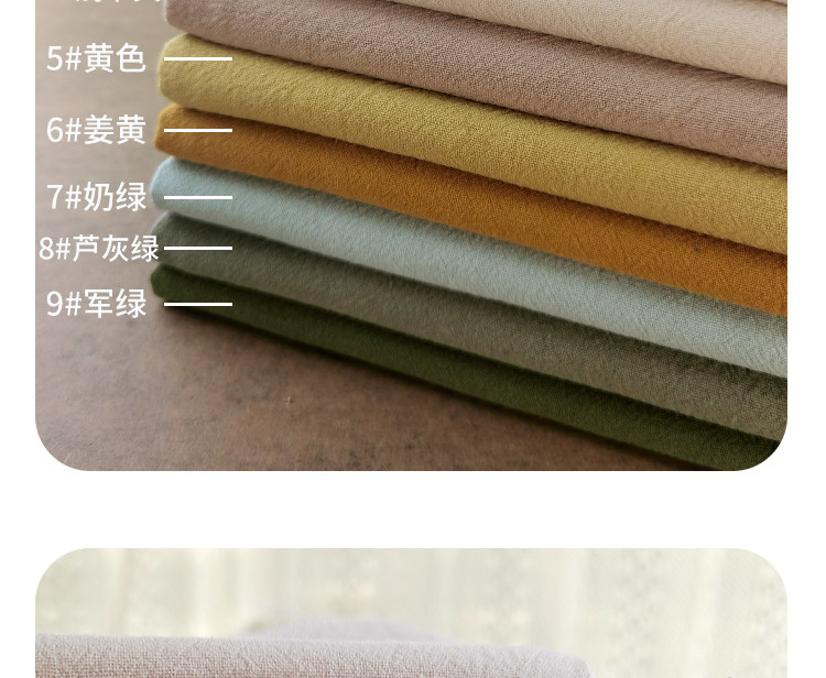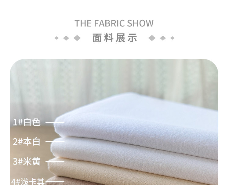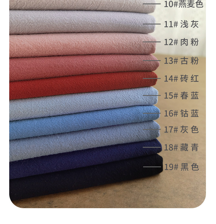 颜色分类 花色,白色,黄色,灰色,黑色,本白色,米黄色,浅卡其,姜黄,奶绿,芦灰绿,军绿,燕麦色,浅灰,肉粉,古粉,砖红,春蓝,钴蓝,藏青