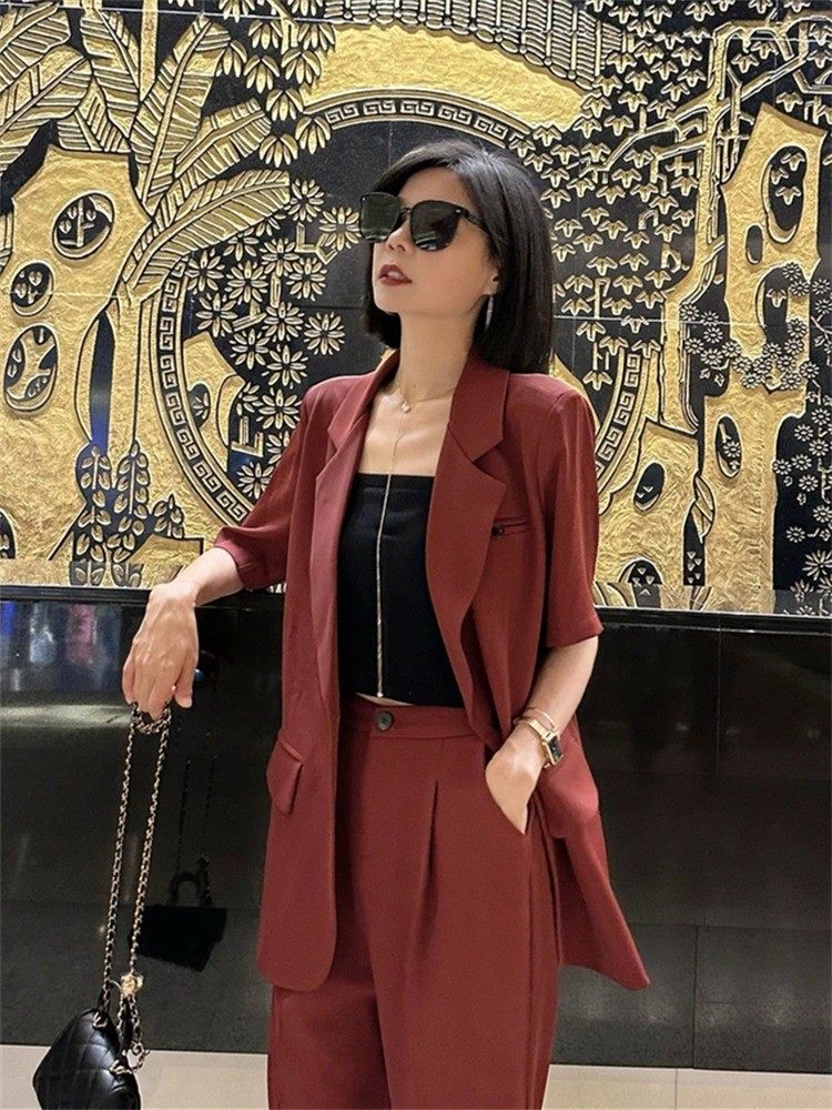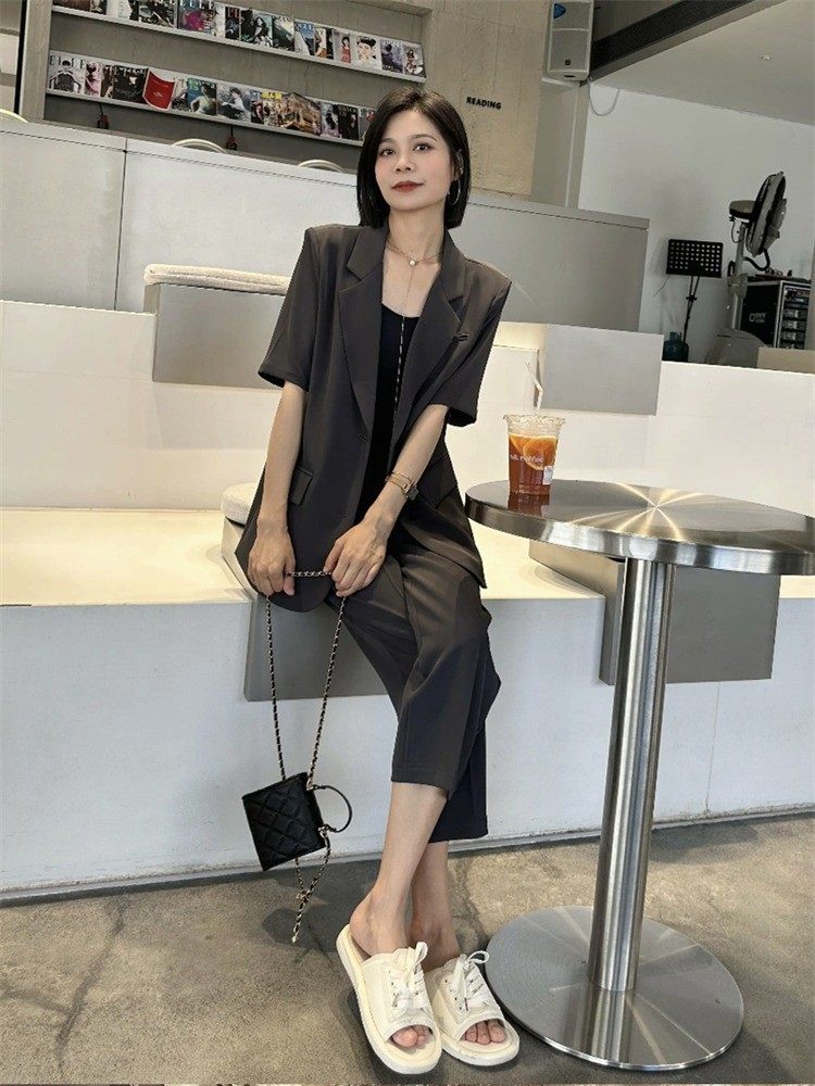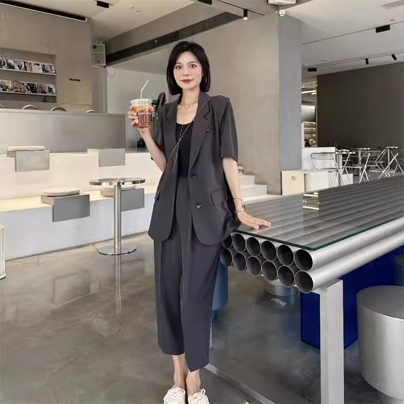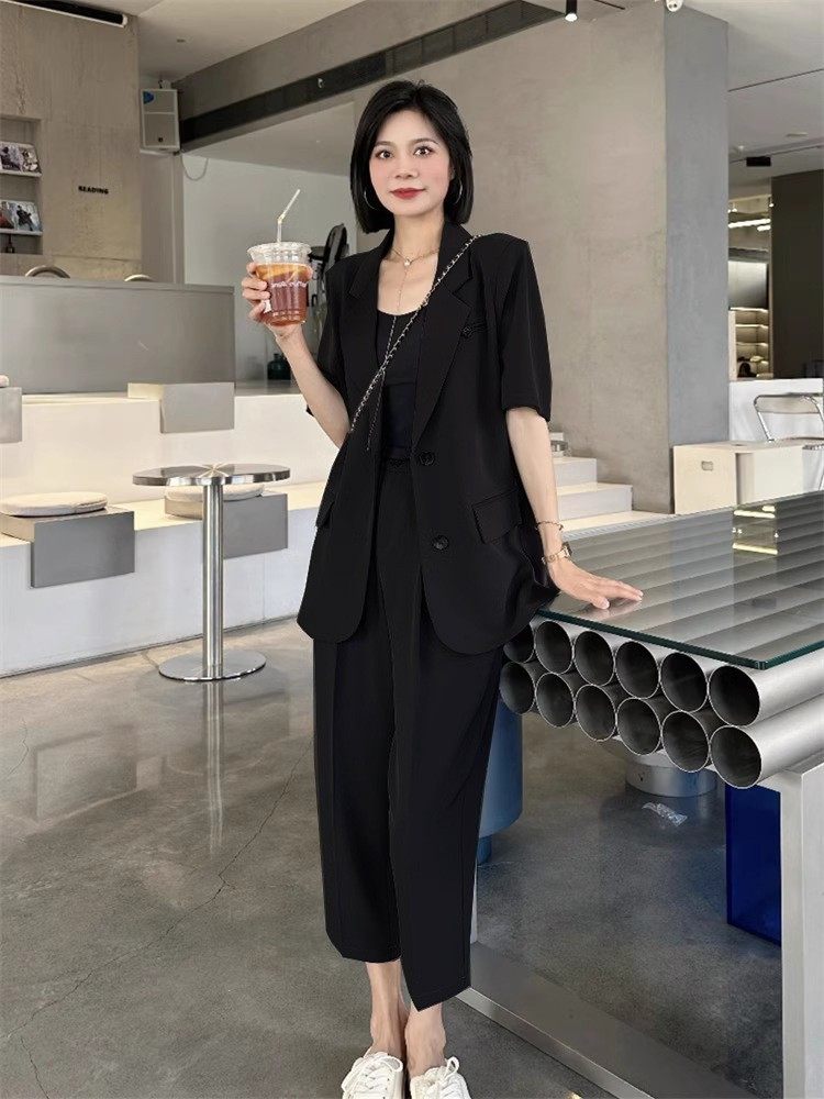 夏装新特大码女装胖妹m西服套装两件套显瘦洋气职业西装外套200斤