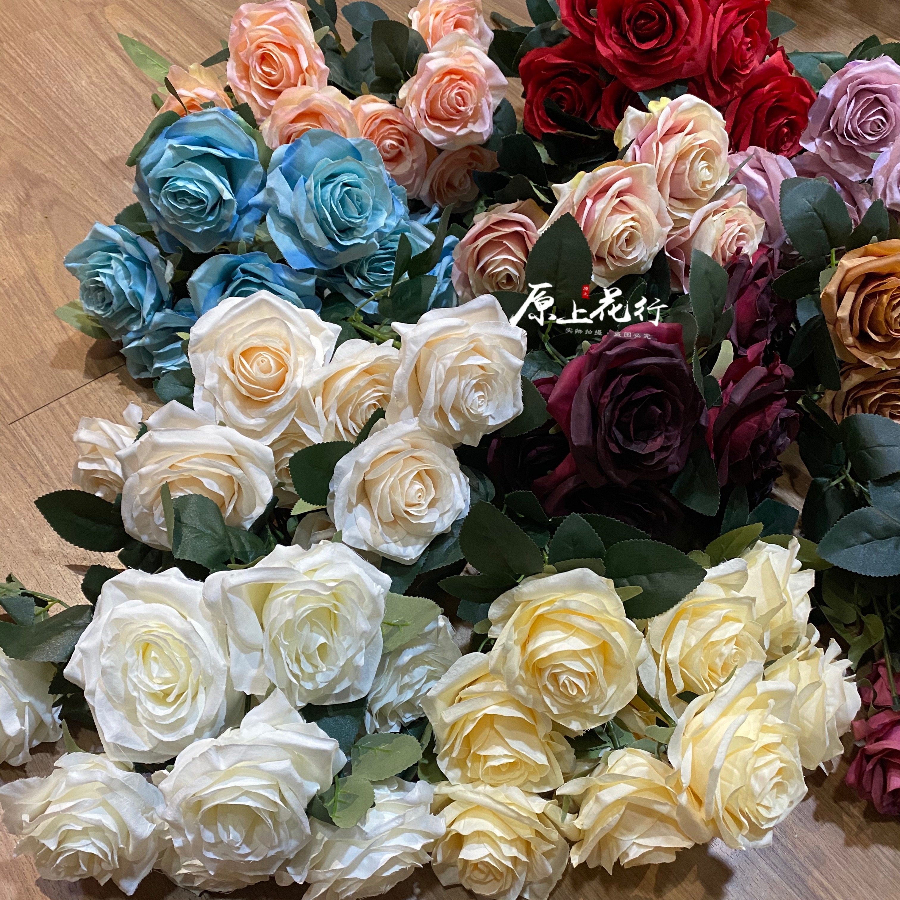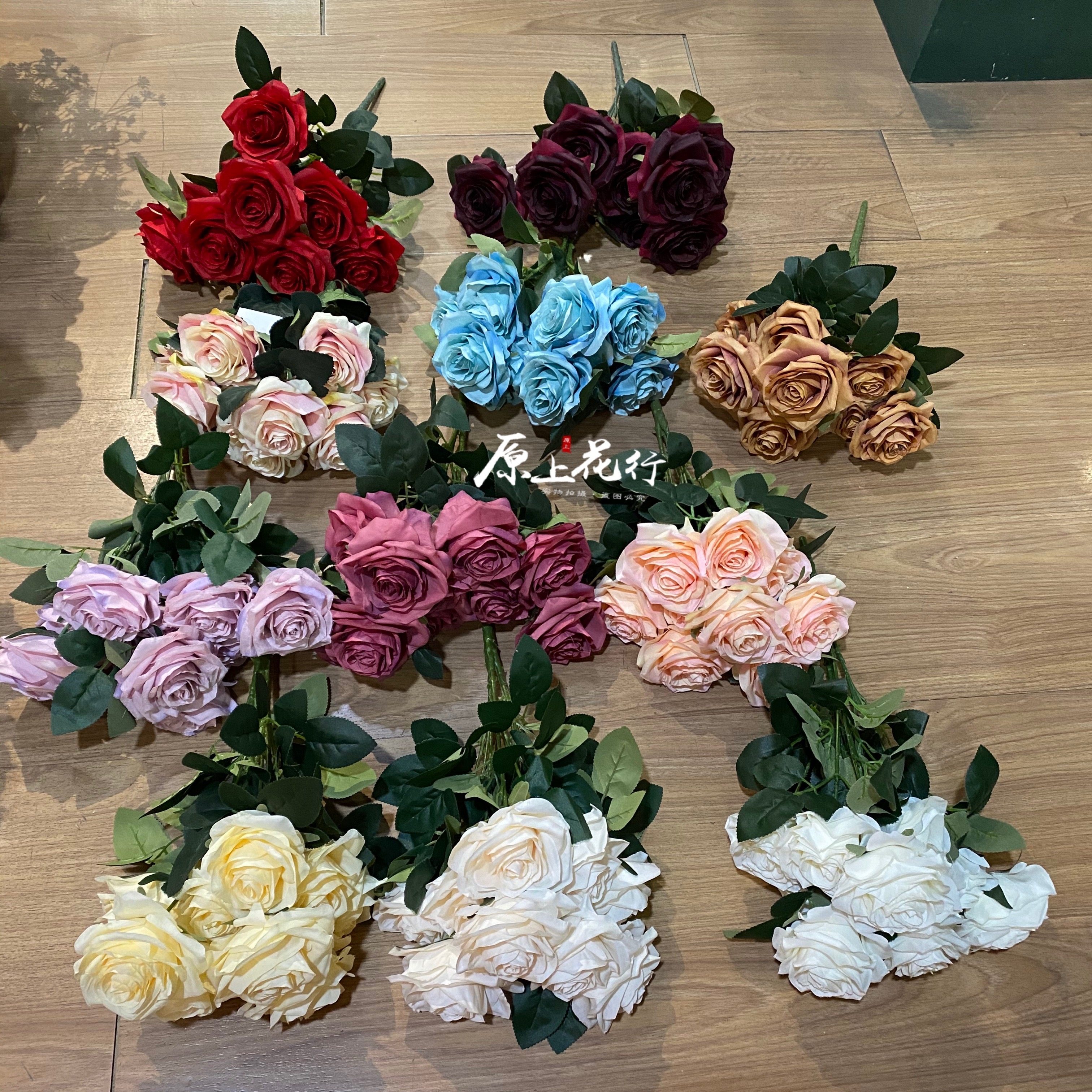 10头把束玫瑰仿真假花大朵绢花婚庆道具花墙装饰客厅摆设路引插花