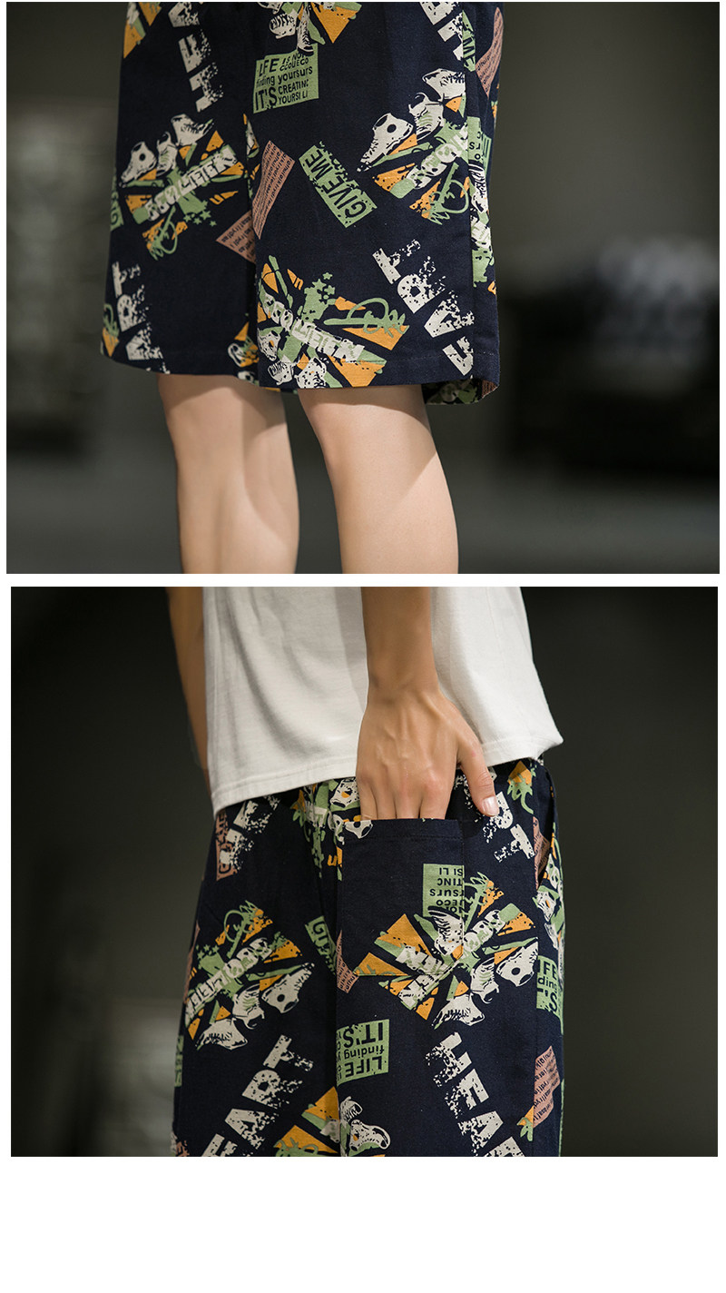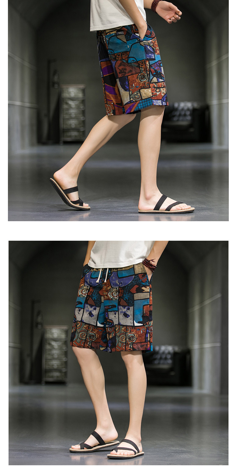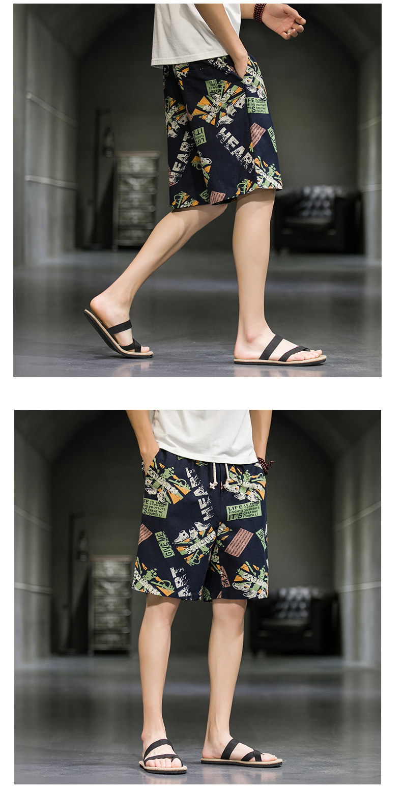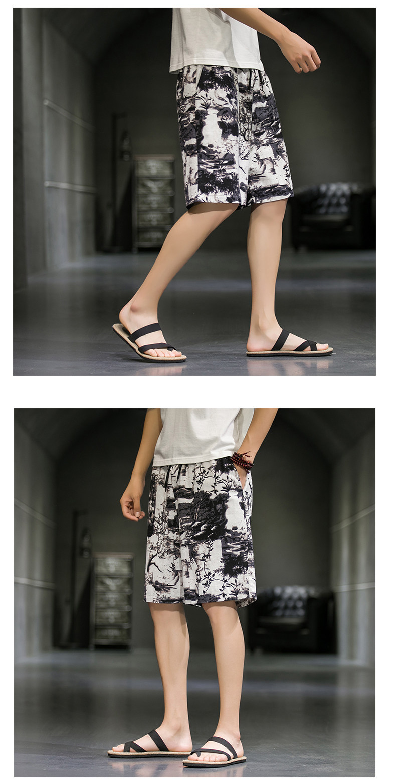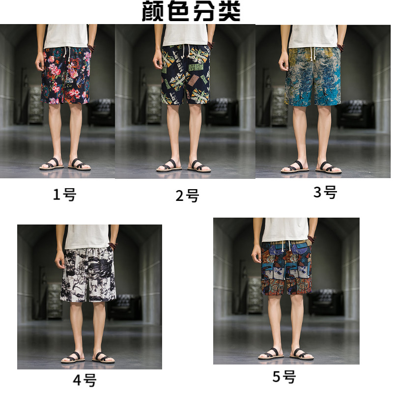 短裤男夏季潮牌五分花裤子外穿宽松速干沙滩裤男士休闲亚麻冰丝裤